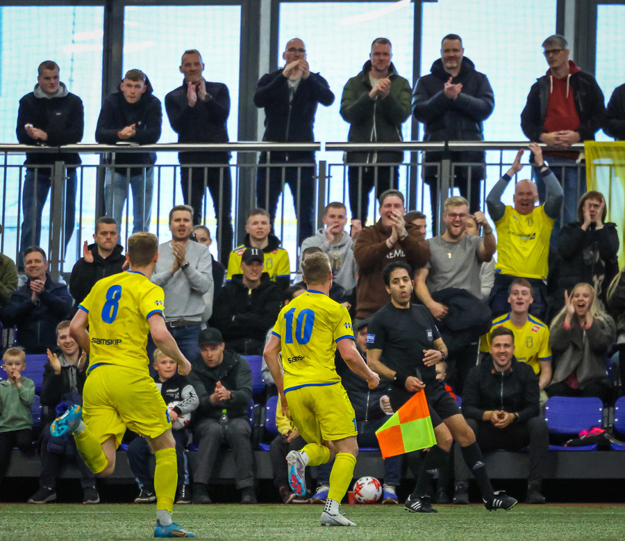 Heimamenn voru ekki lengi að þessu. Svipuð uppskrift og í Gróttumarkinu rétt áðan. Axel með sendingu frá hægri á Mána Austmann sem stangaði boltann í netið