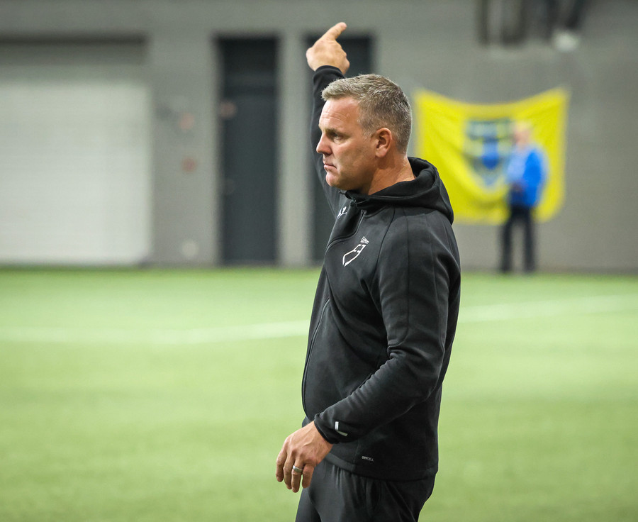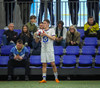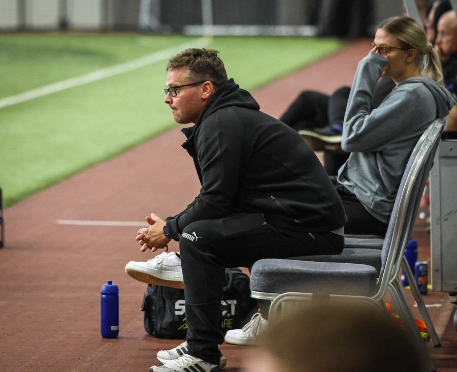 Fyrstu 17 mínúturnar hefur Chris Brazell, þjálfari Gróttu, verið vægast sagt líflegur á hliðarlínunni og er ekki feiminn við að láta sínar skoðanir í ljós.