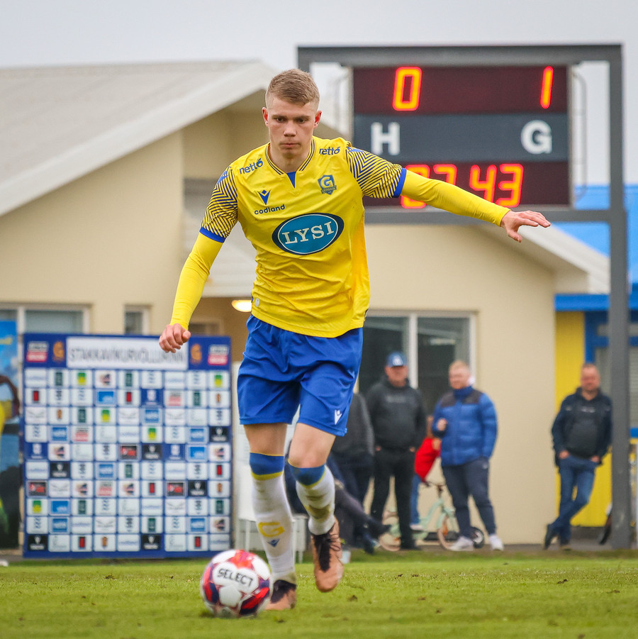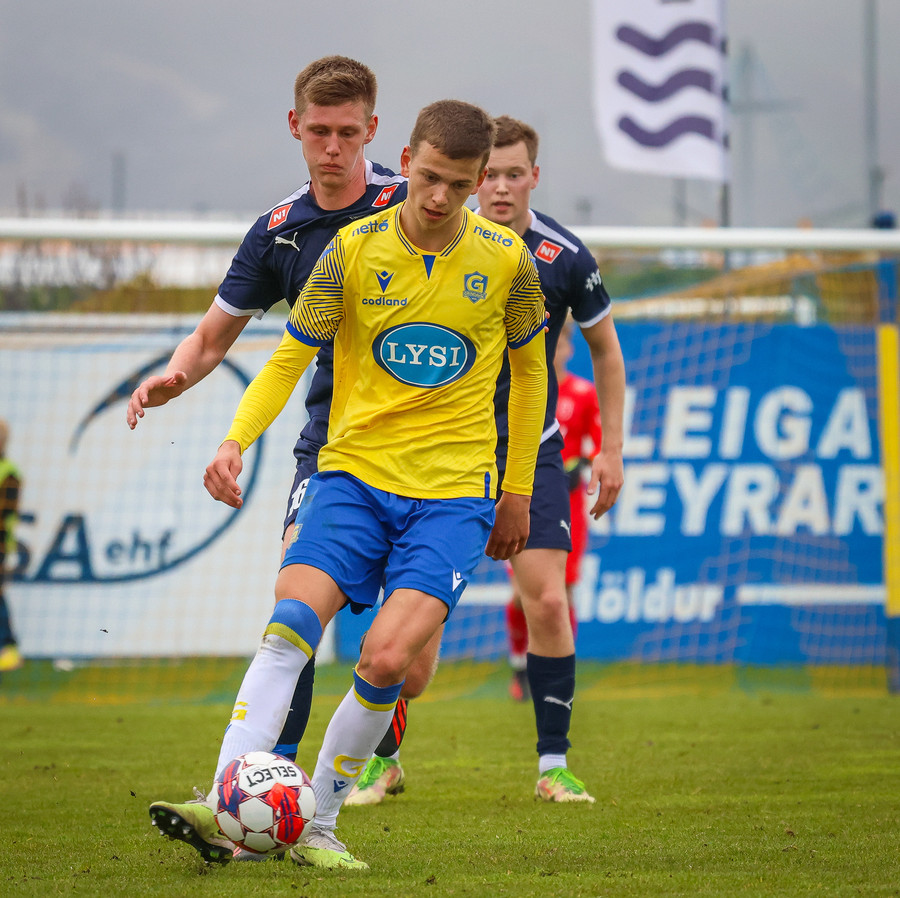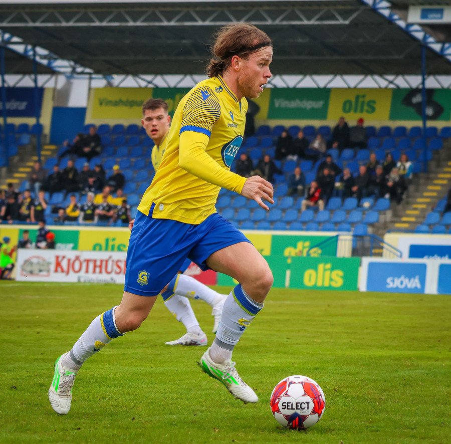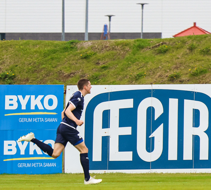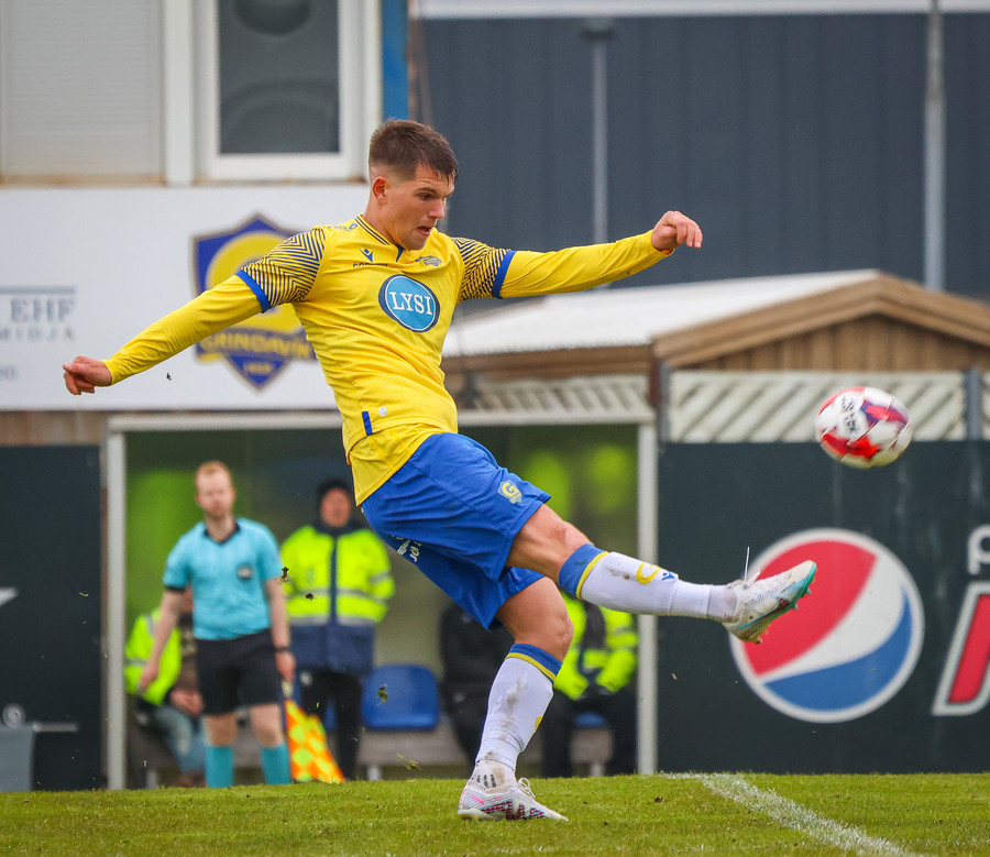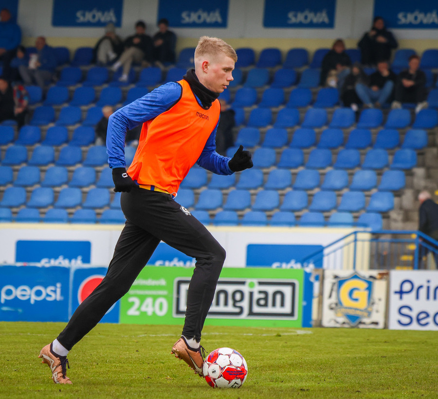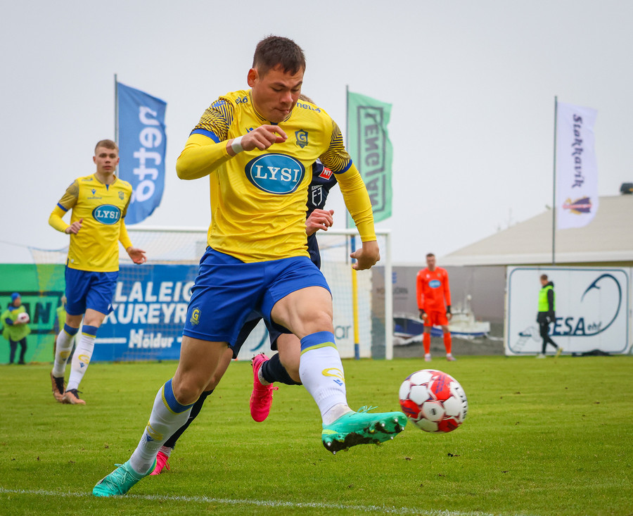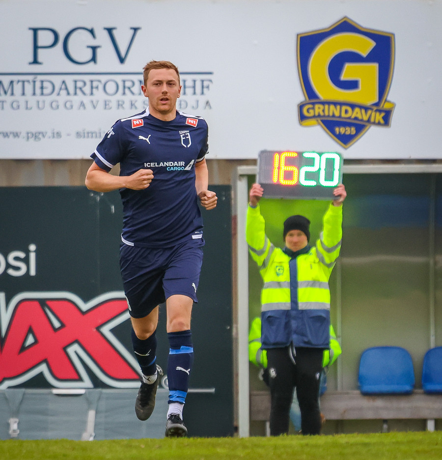 Gerir sér lítið fyrir og tætir í sig vörn Grindavíkur í sig eins og hún sé ekki þarna og leggur boltann framhjá Aroni Degi í markinu eins og alvöru senter. Og ofan á allt var það með vinstri fæti!