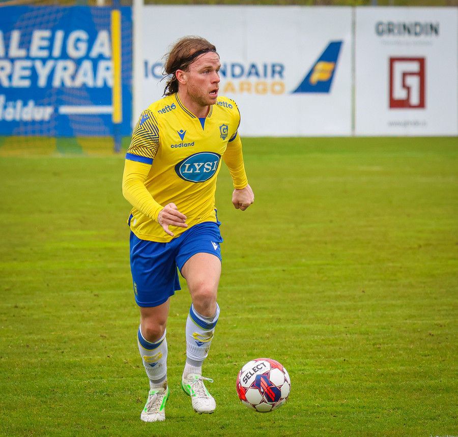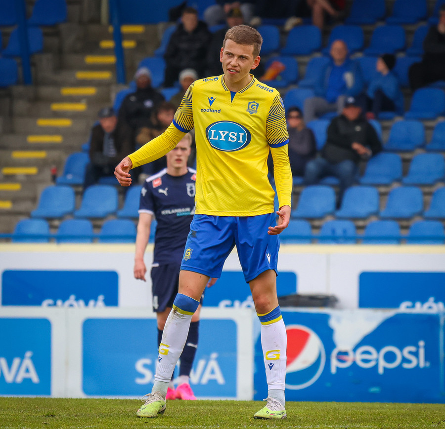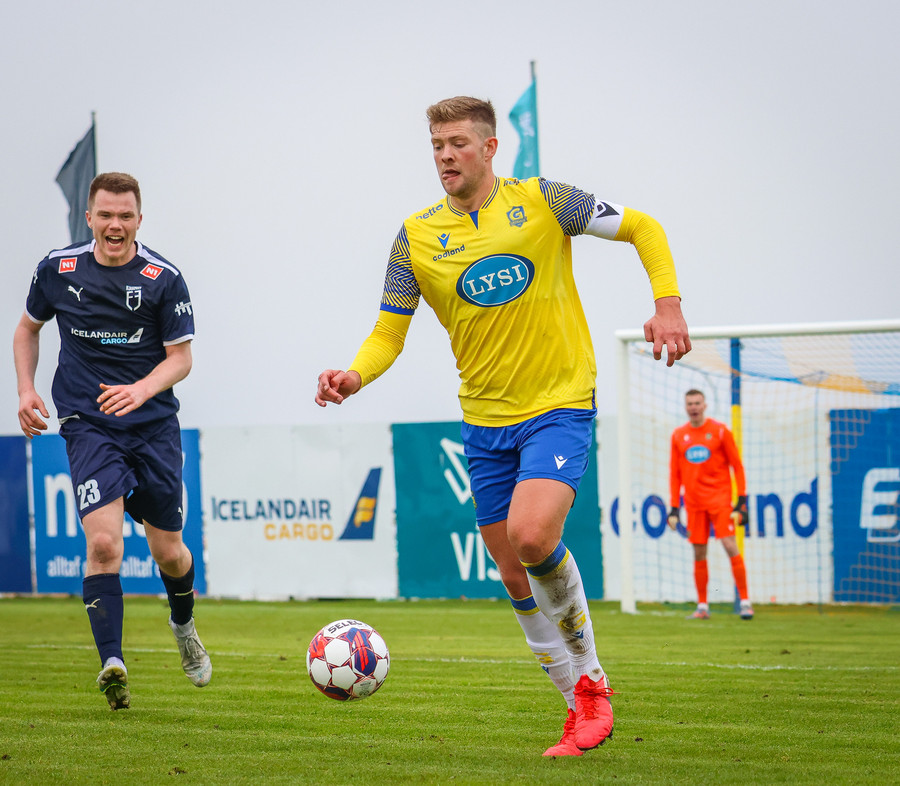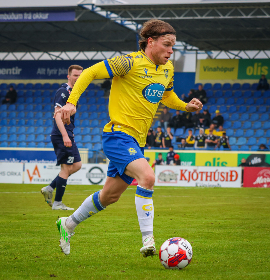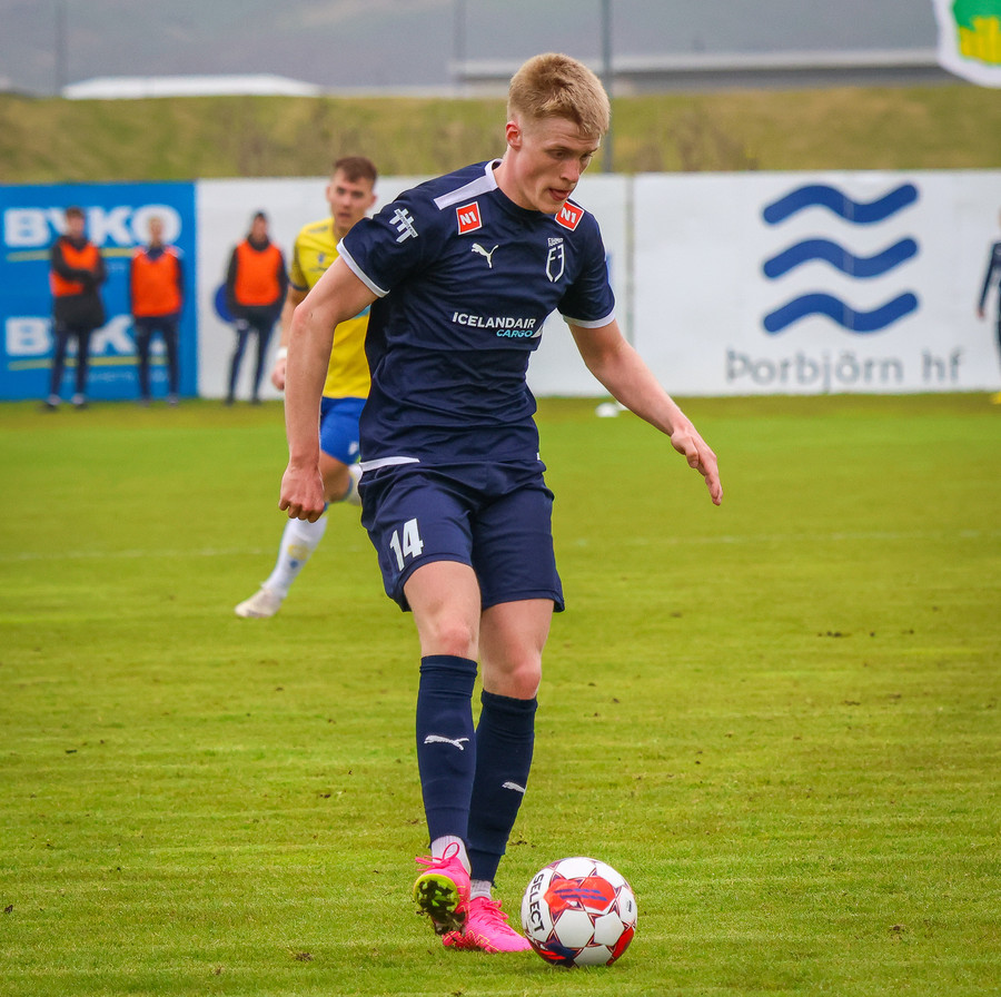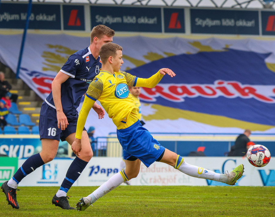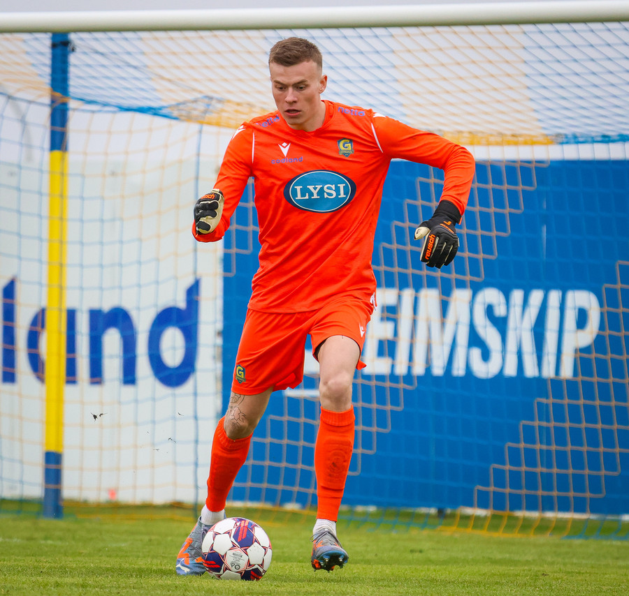Gerir sér lítið fyrir og tætir í sig vörn Grindavíkur í sig eins og hún sé ekki þarna og leggur boltann framhjá Aroni Degi í markinu eins og alvöru senter. Og ofan á allt var það með vinstri fæti!