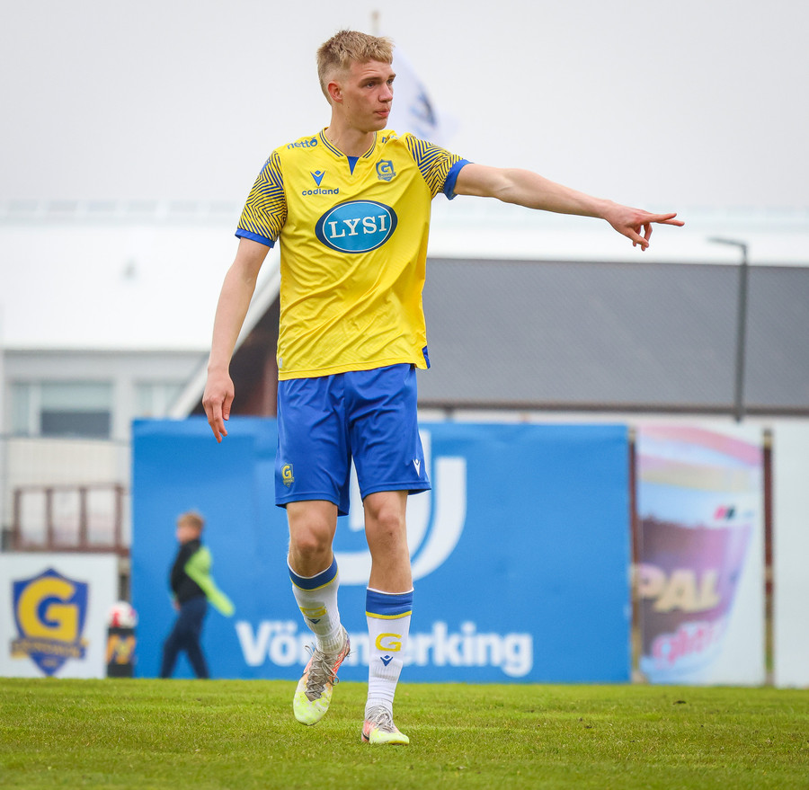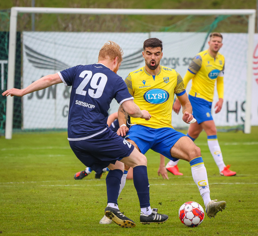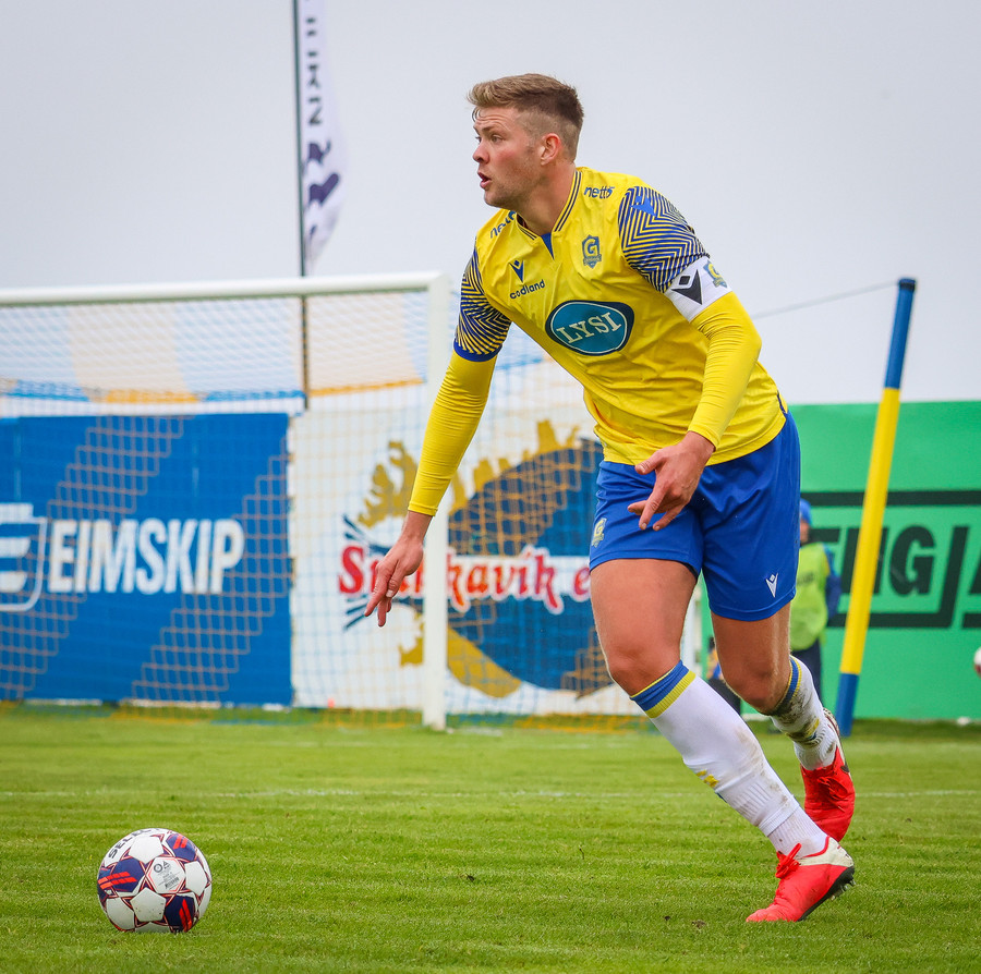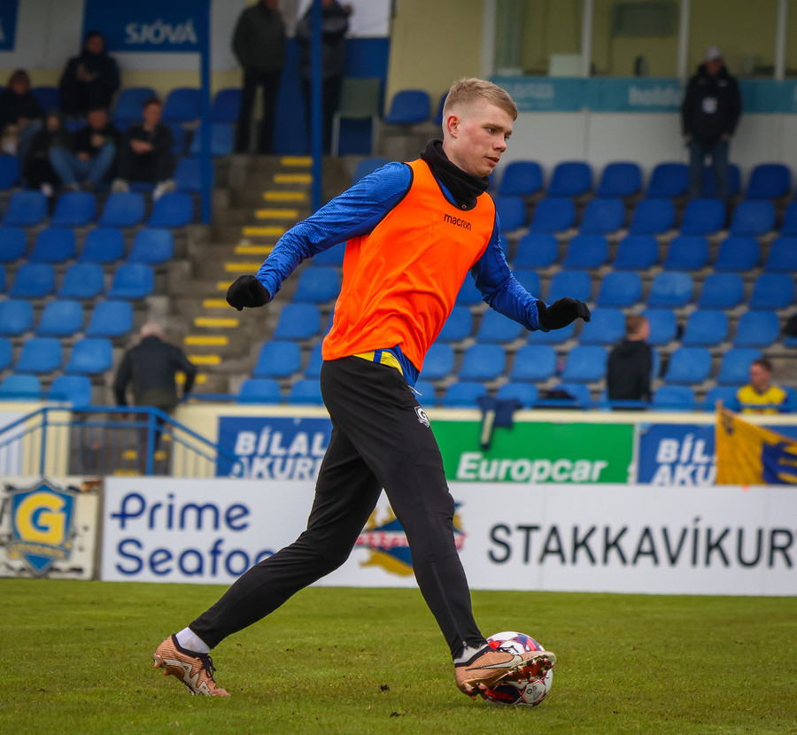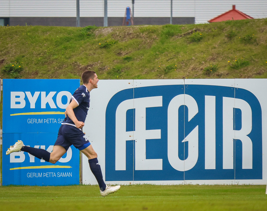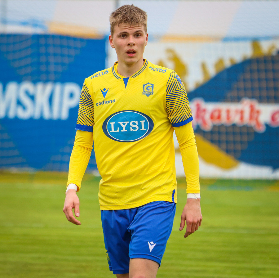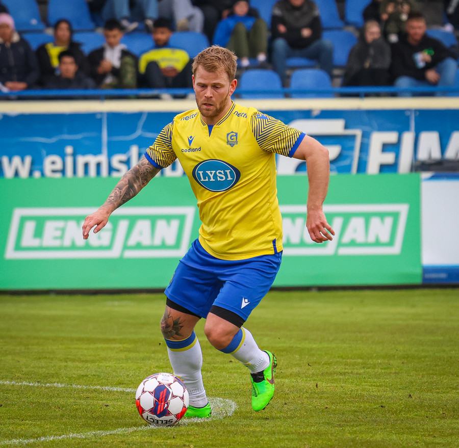 Gerir sér lítið fyrir og tætir í sig vörn Grindavíkur í sig eins og hún sé ekki þarna og leggur boltann framhjá Aroni Degi í markinu eins og alvöru senter. Og ofan á allt var það með vinstri fæti!