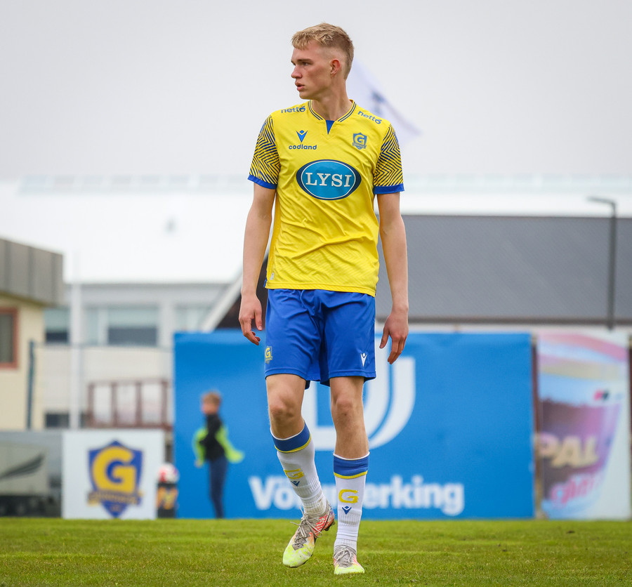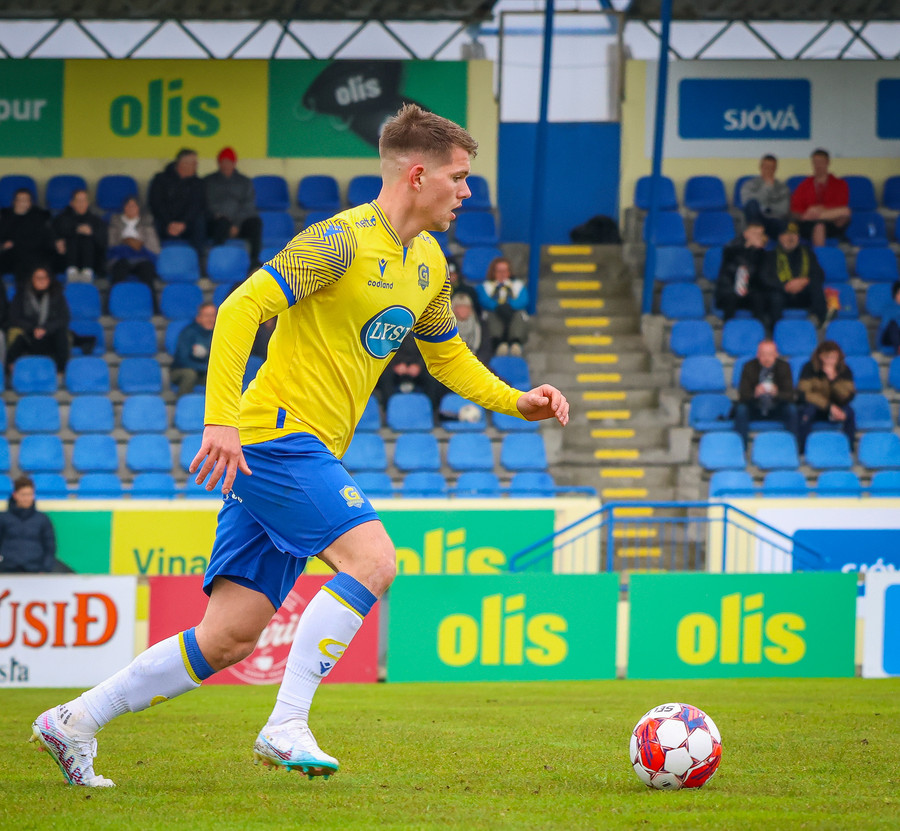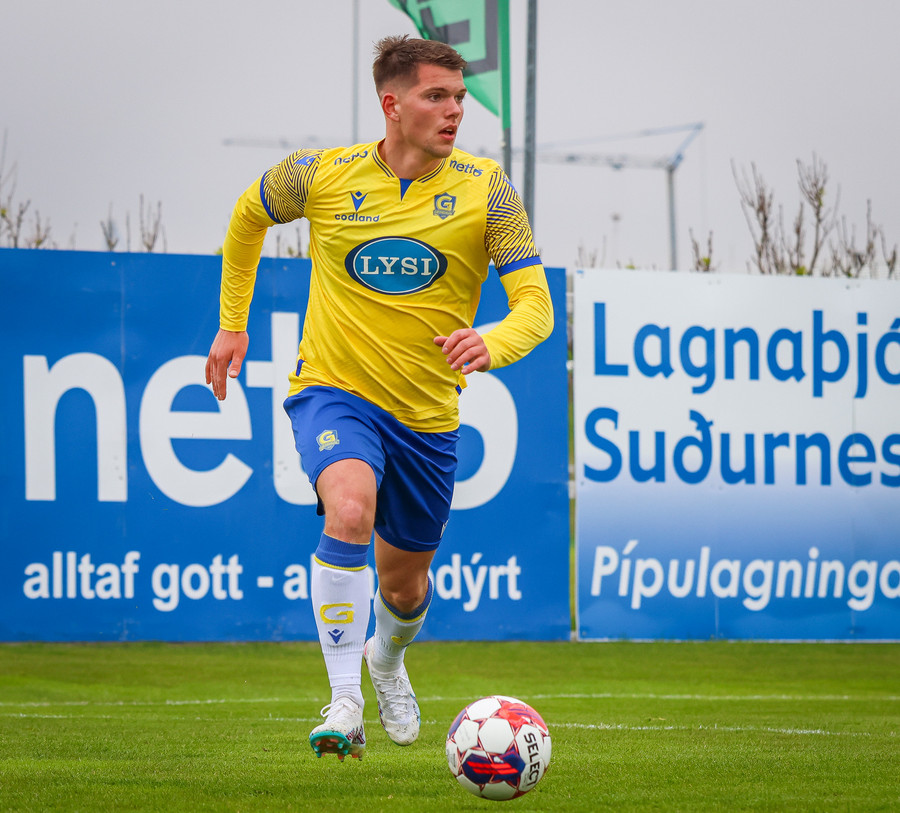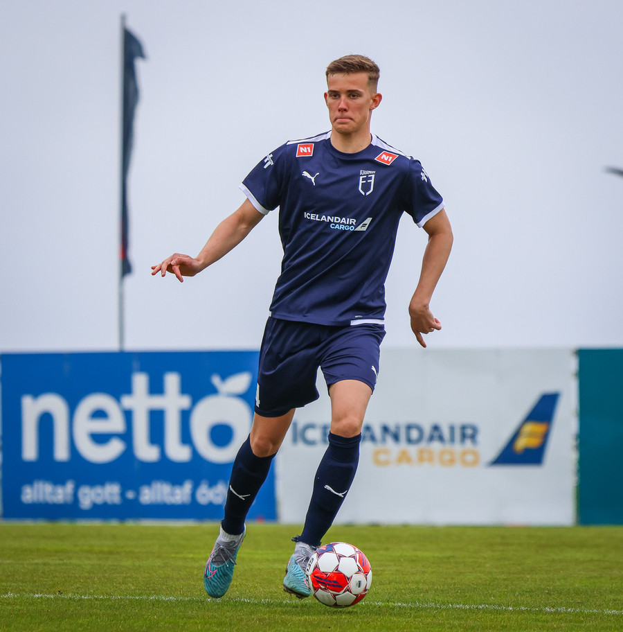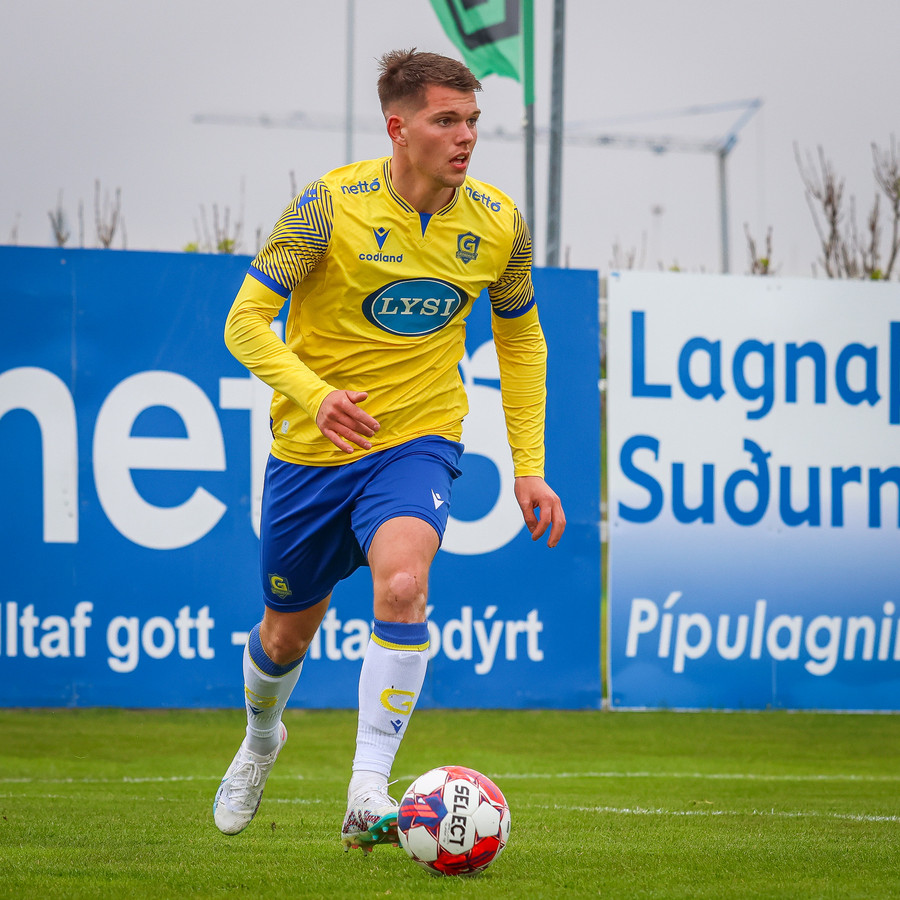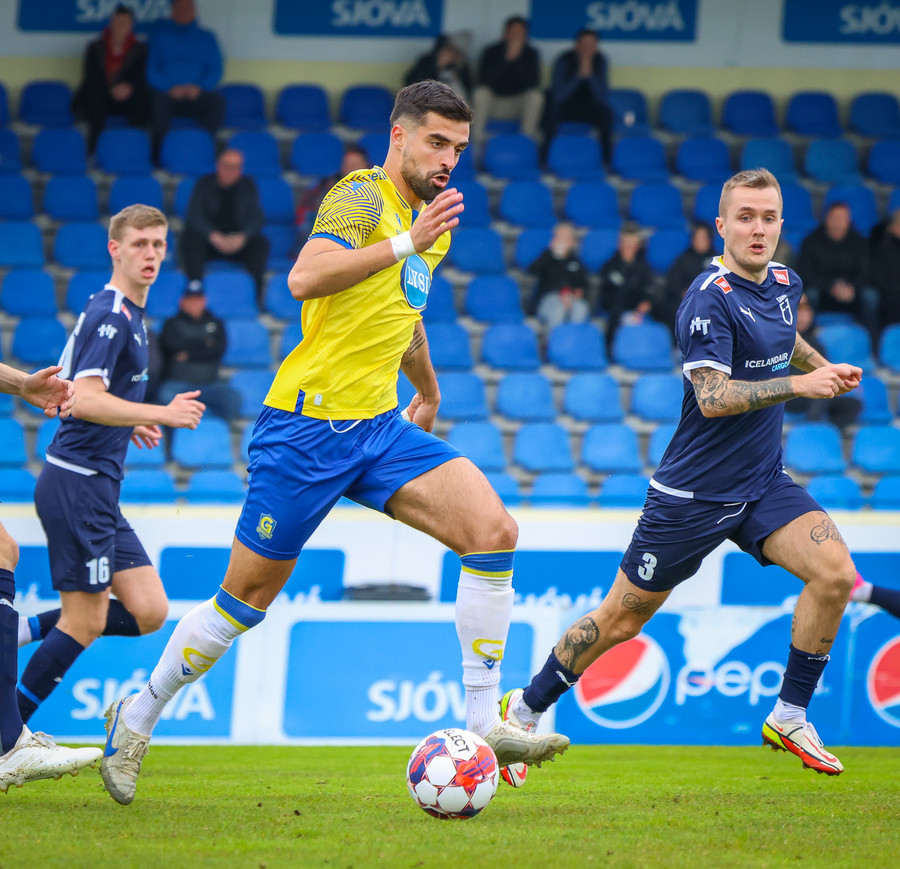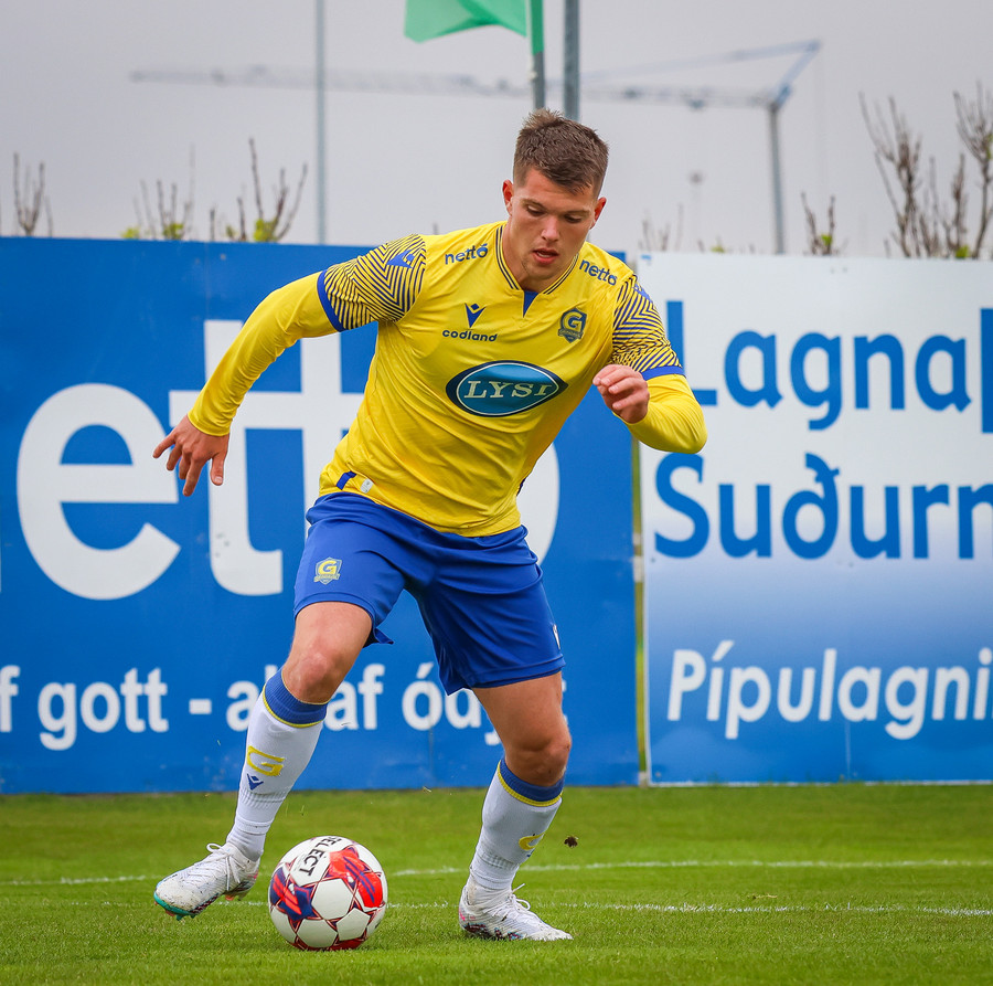 Gerir sér lítið fyrir og tætir í sig vörn Grindavíkur í sig eins og hún sé ekki þarna og leggur boltann framhjá Aroni Degi í markinu eins og alvöru senter. Og ofan á allt var það með vinstri fæti!