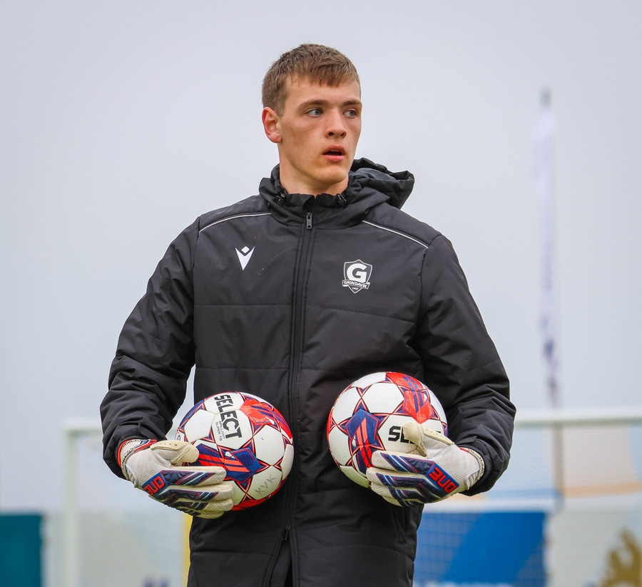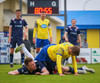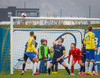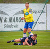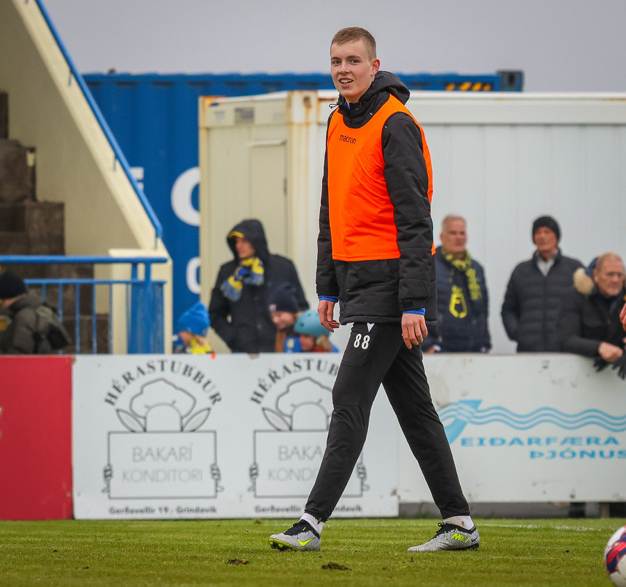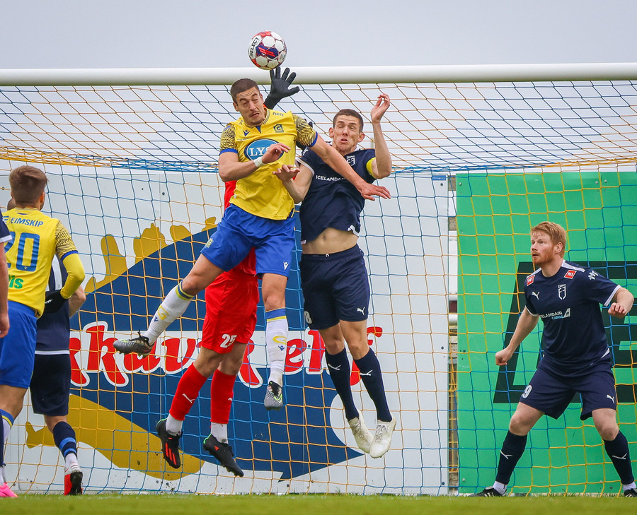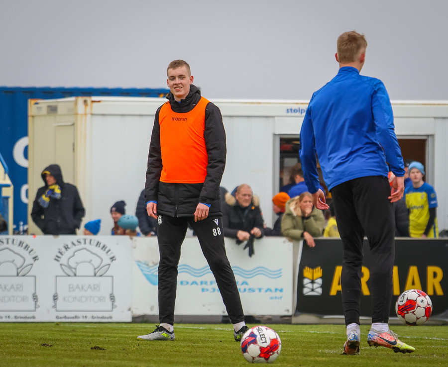 Fengu annað færi sem Aron Dagur varði í horn og annað strax í kjölfarið. Boltinn dettur niður í teignum en gestirnir ná ekki að koma boltanum á markið og Grindvíkingar hreinsa.