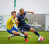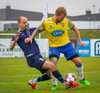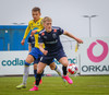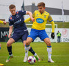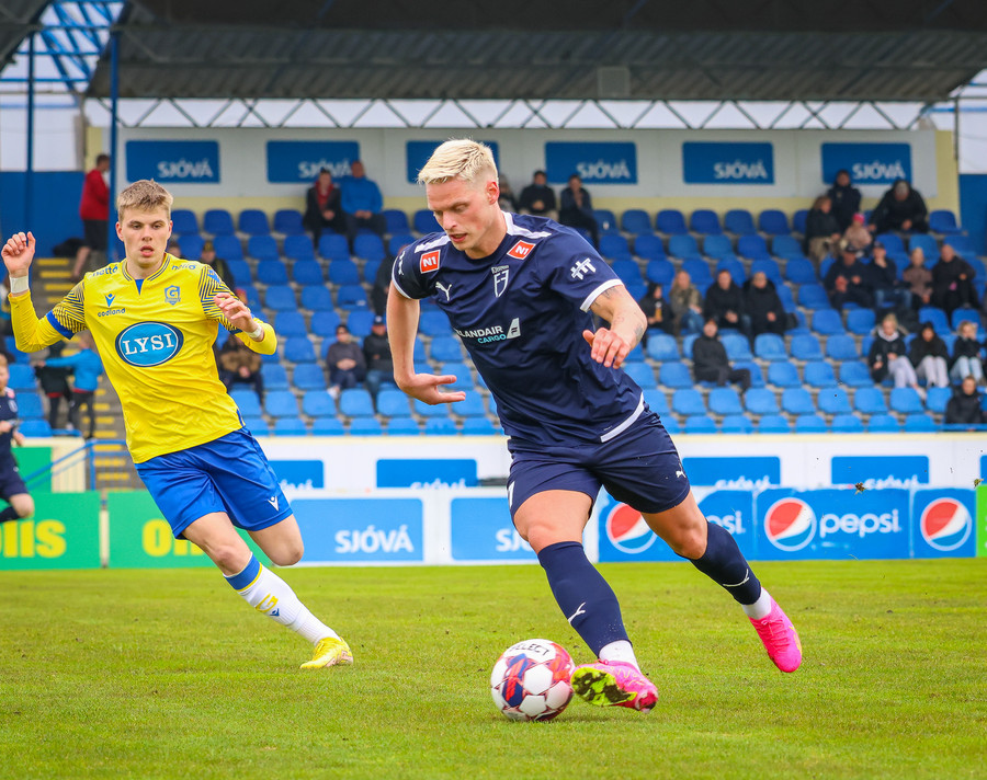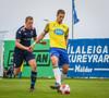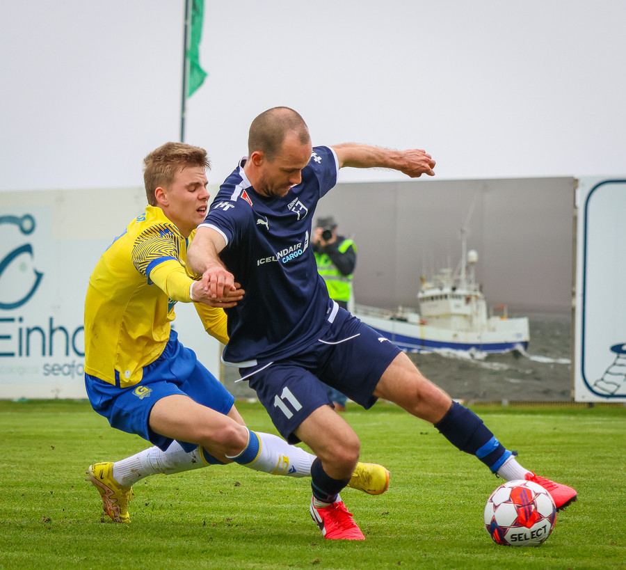 Dofri Snorrason að komast í hörkufæri en Bjarki Aðalsteins kemst fyrir skot hans á síðustu stundu.