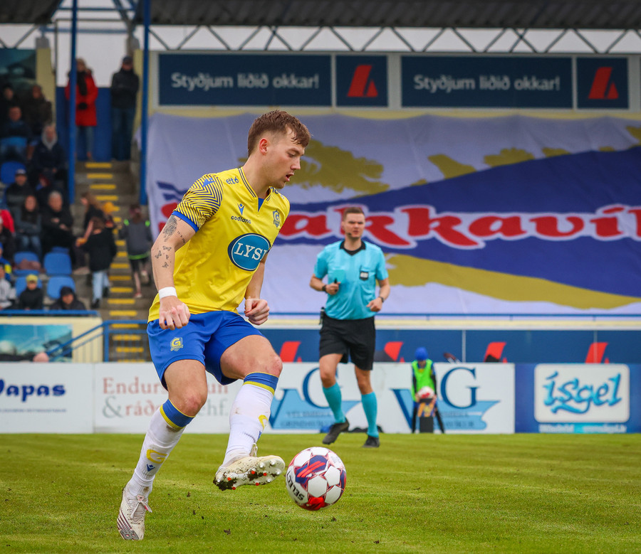 Dagur Ingi Hammer með sprett upp vinstri vænginn. Kemst inn á teiginn en er of lengi að láta vaða á markið. Varnarmenn komast fyrir og boltinn í horn.
