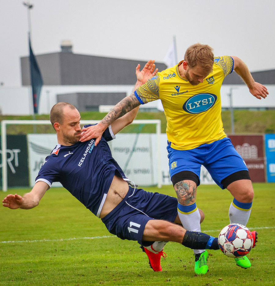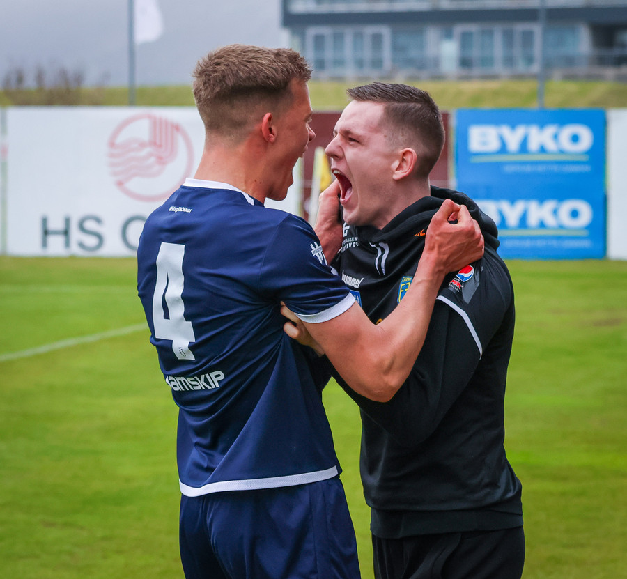 Sólin skín kannski ekki beint skært á suðvesturhorni landsins þessa daganna en aðstæður til knattspyrnuleikja eru hreint út frábærar.