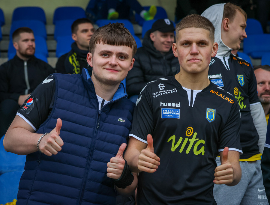 Í stúkunni má sjá Mikael Neville Anderson leikmann AGF og landsliðsmann, Kristján Óli Þungavigtarsérfræðingur er sömuleiðis mættur. Dagur Austmann er mættur fylgjast með bróður sínum og þá er Þórsarinn og ein skærasta stjarna Fótbolta.net Sæbjörn Steinke að drekka í sig stemminguna.
