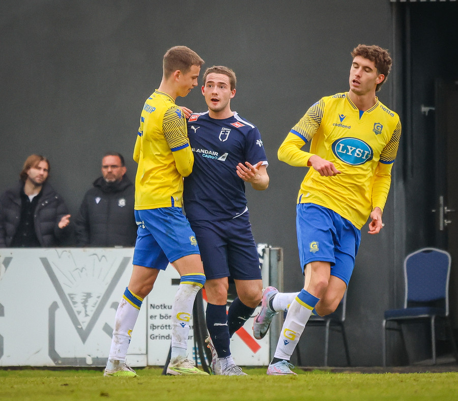 Heimamenn í Grindavík sitja fyrir leikinn í þriðja sæti deildarinnar með ellefu stig, þremur stigum á eftir liði Fjölnis. Þrír sigrar, tvö jafntefli og eitt tap og markatalan 7-5 er uppskeran til þessa hjá Grindvíkingum sem sitja eins og áður sagði í þriðja sæti deildarinnar.