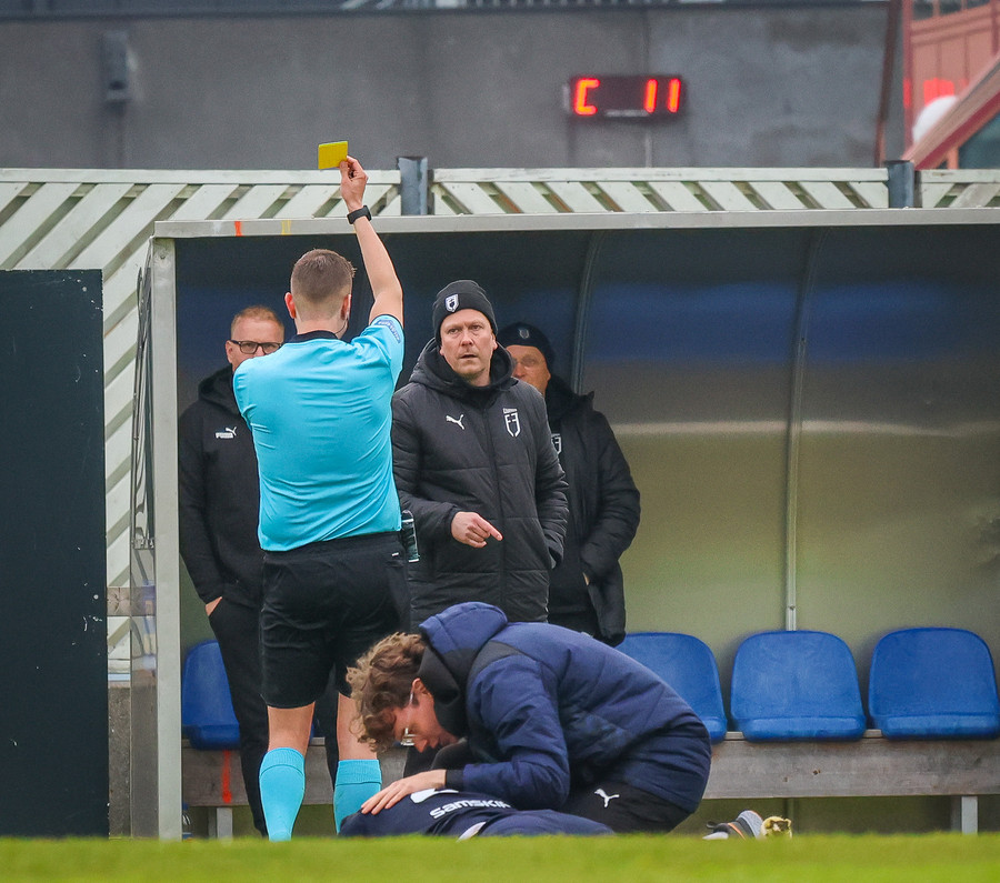 Fyrir hvað get ég ekki séð. Líklegast tafir að sækja boltann en Jóhann var þá ansi fljótur að rífa upp spjaldið.