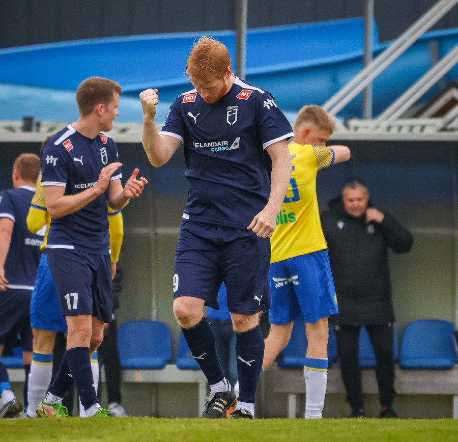 Hans Viktor greinilega kann vel við að skora gegn Grindavík