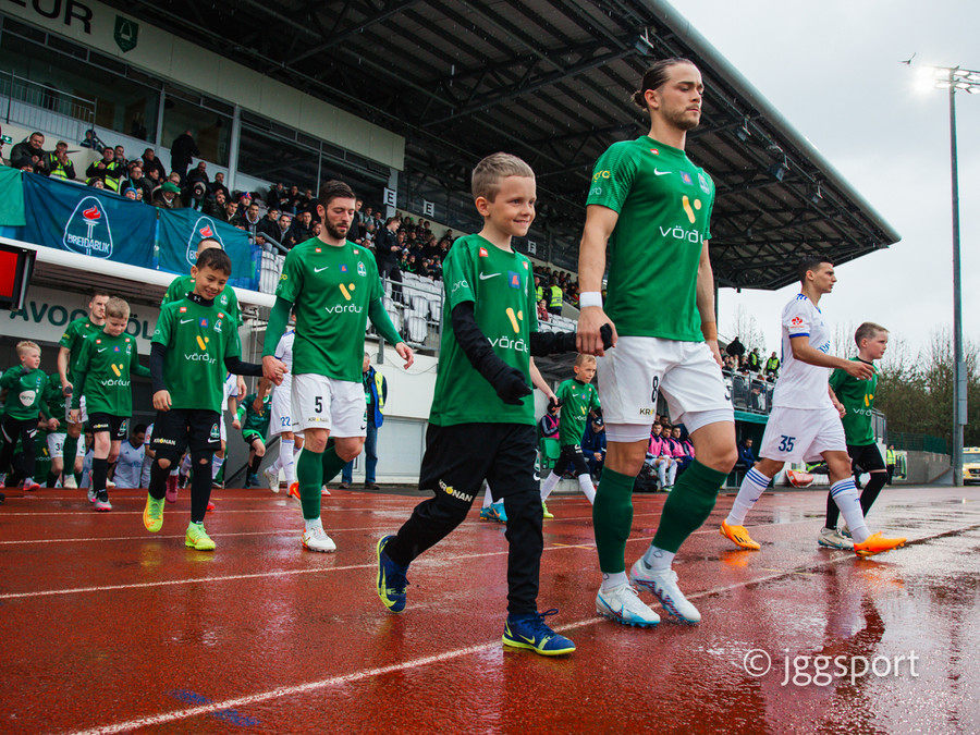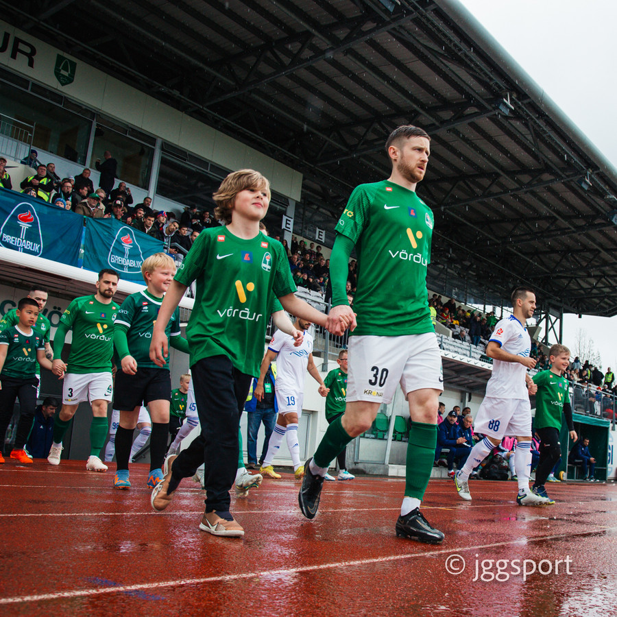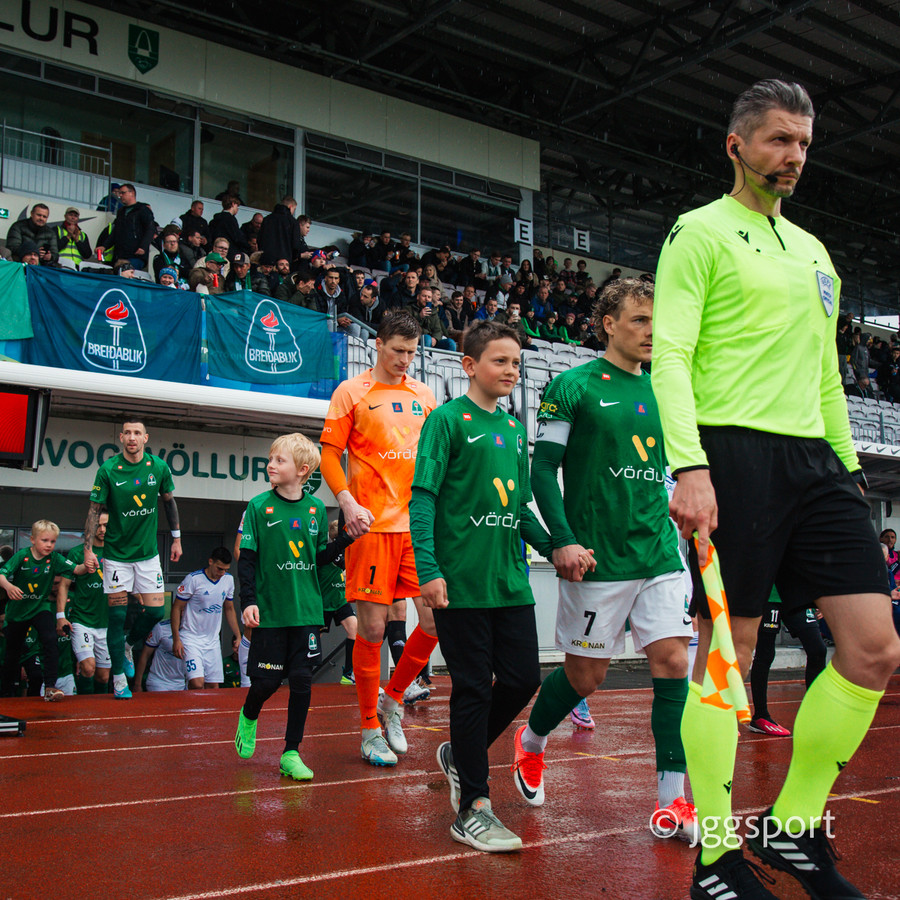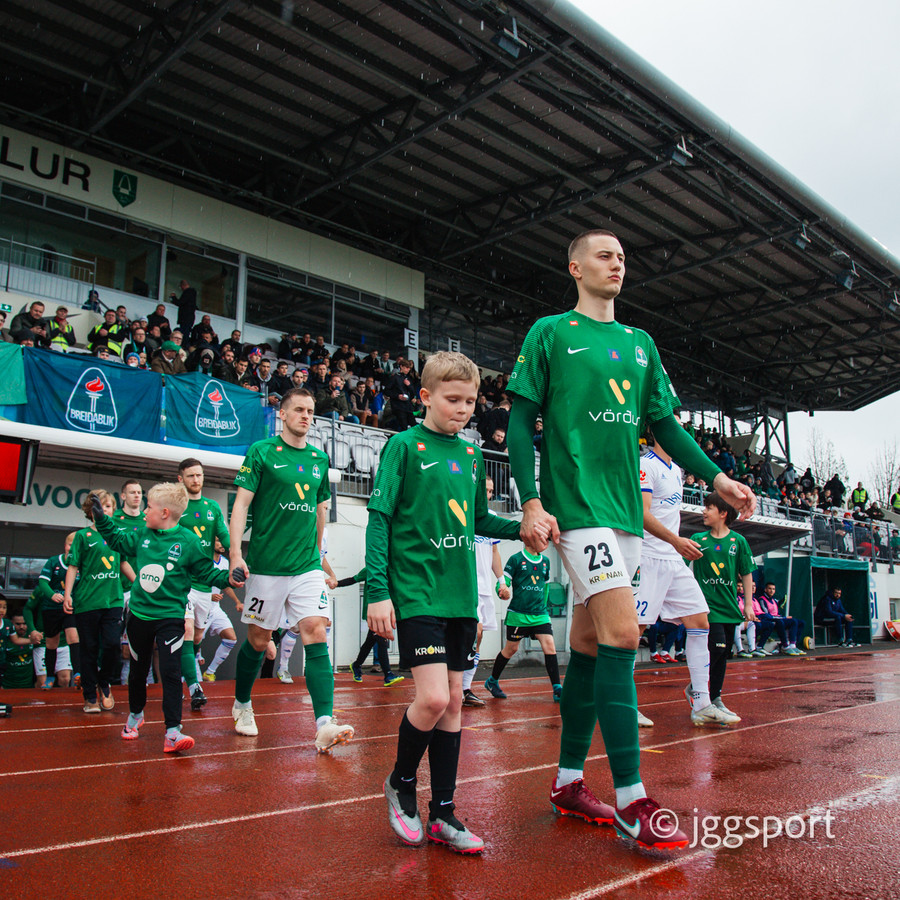 Liðin ganga út á völlinn. Í kvöld er ég harður stuðningsmaður Breiðabliks og textalýsingin gæti litast af því.