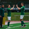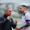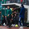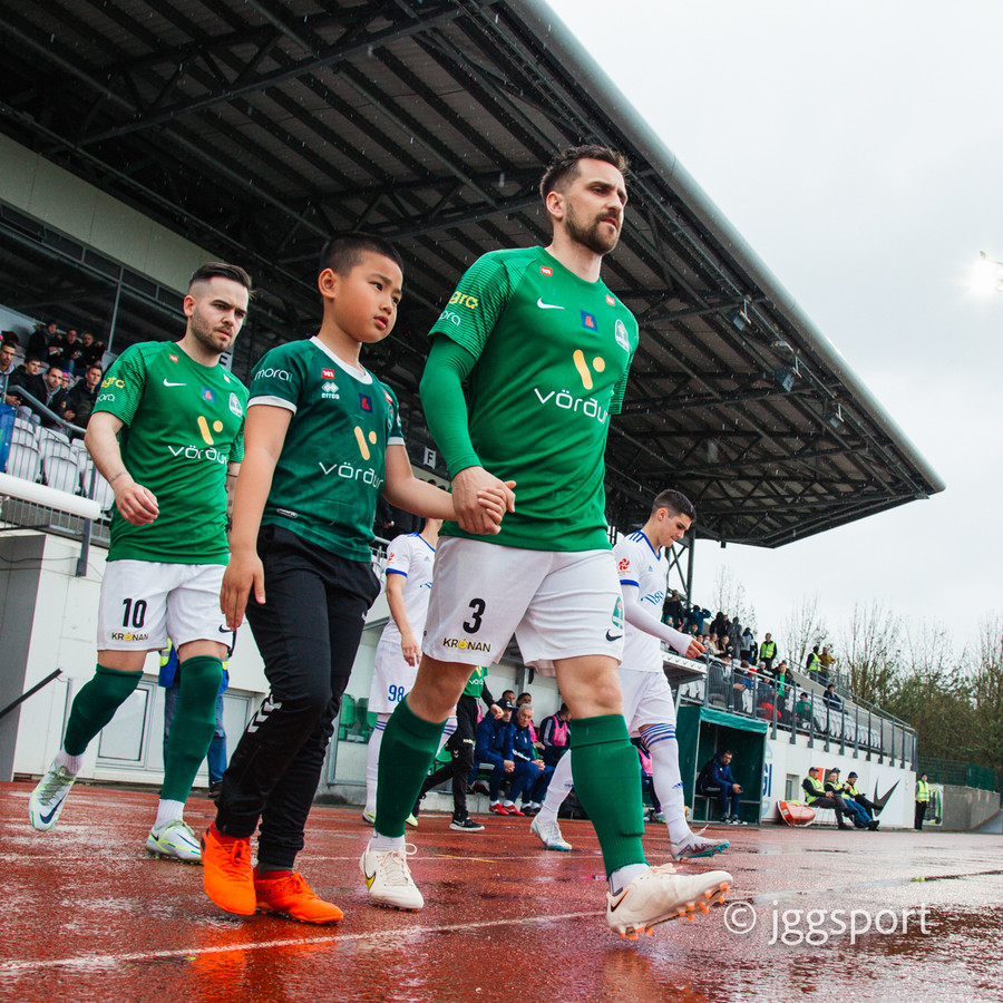 Stefán Ingi kyssir merkið þegar hann gengur af velli og fær svo gott faðmlag frá Óskari. Kveðjuleikur hans í kvöld. Stúkan stendur á fætur og klappar.