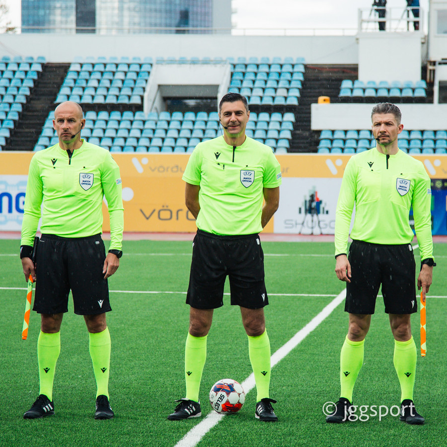 Dómarar leiksins koma allir frá Póllandi, aðaldómarinn er Krzysztof Jakubik en hann hefur áður dæmt hér á landi. Hann dæmdi leik Vals og Maribor (0-3) á Hlíðarenda sumarið 2019. - Notast er við VAR myndbandsdómgæslu í kvöld og koma VAR dómararnir líka frá Póllandi.