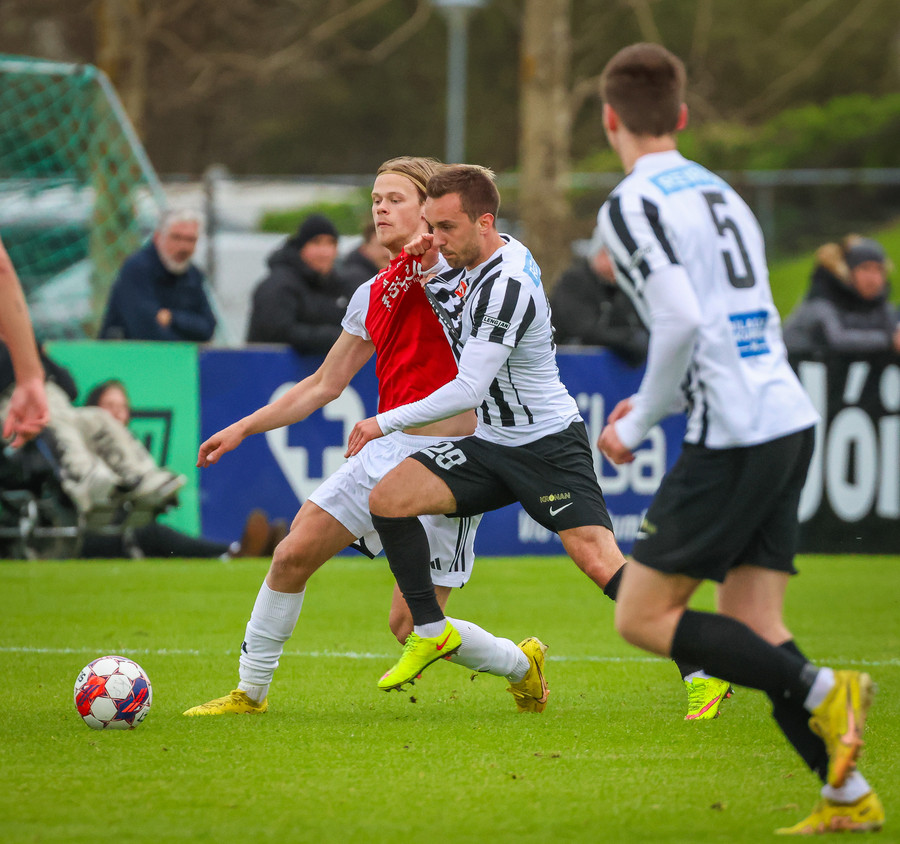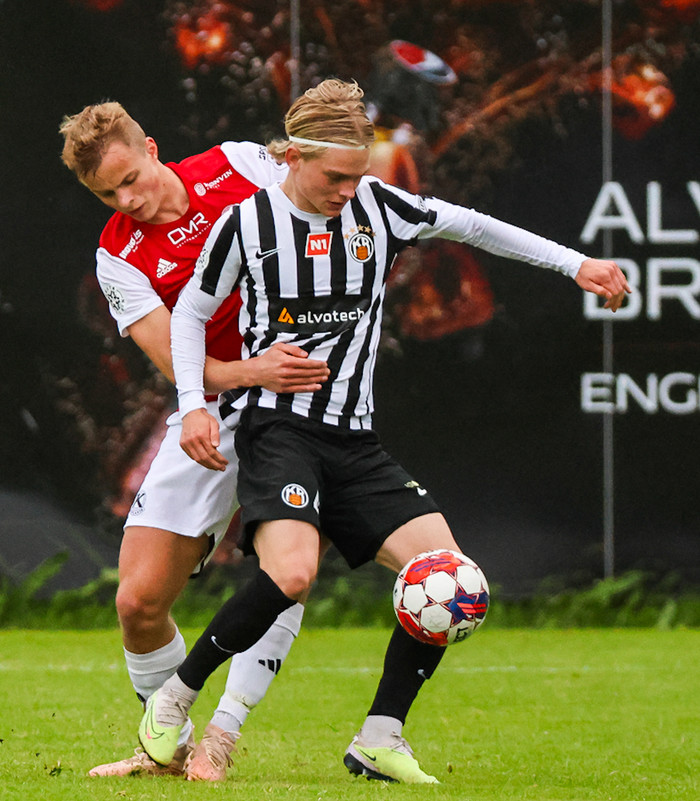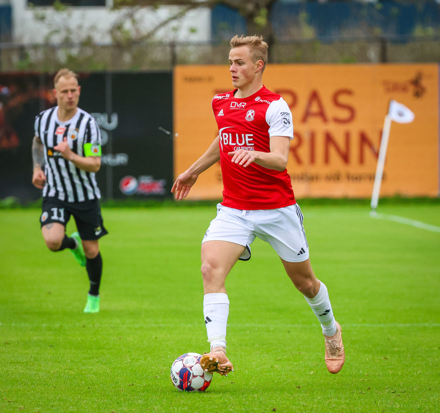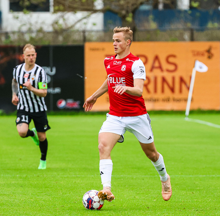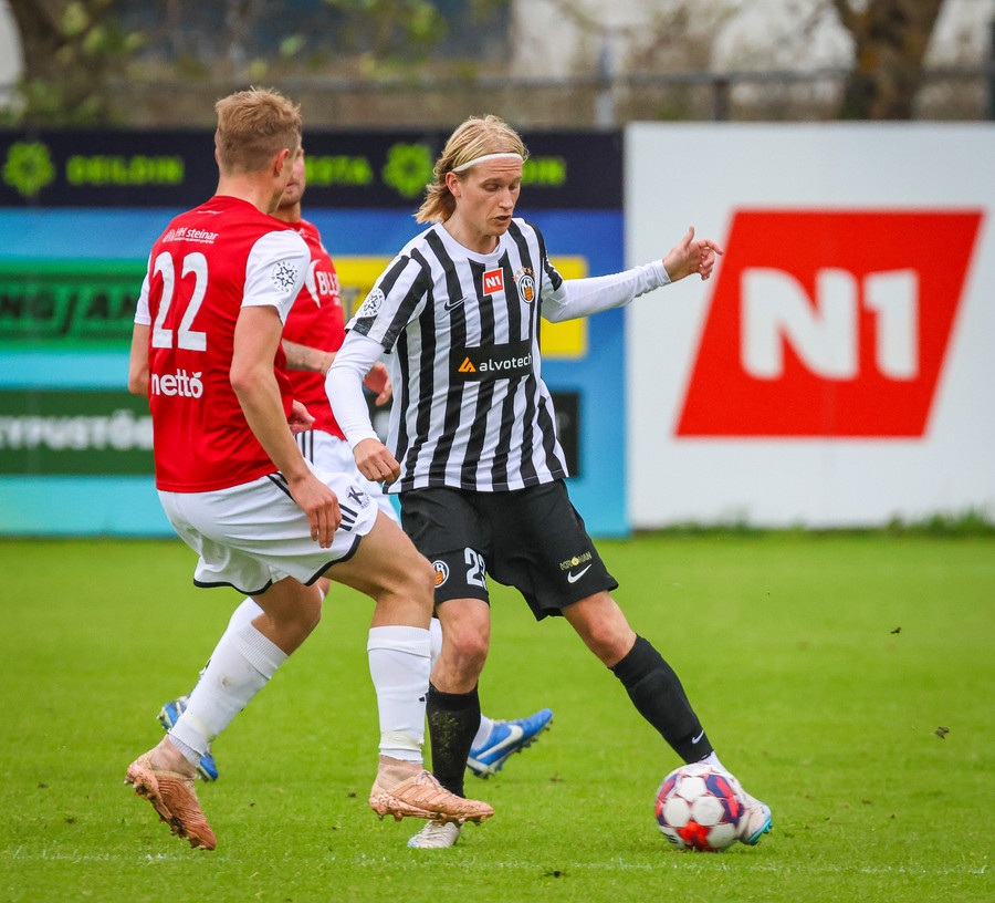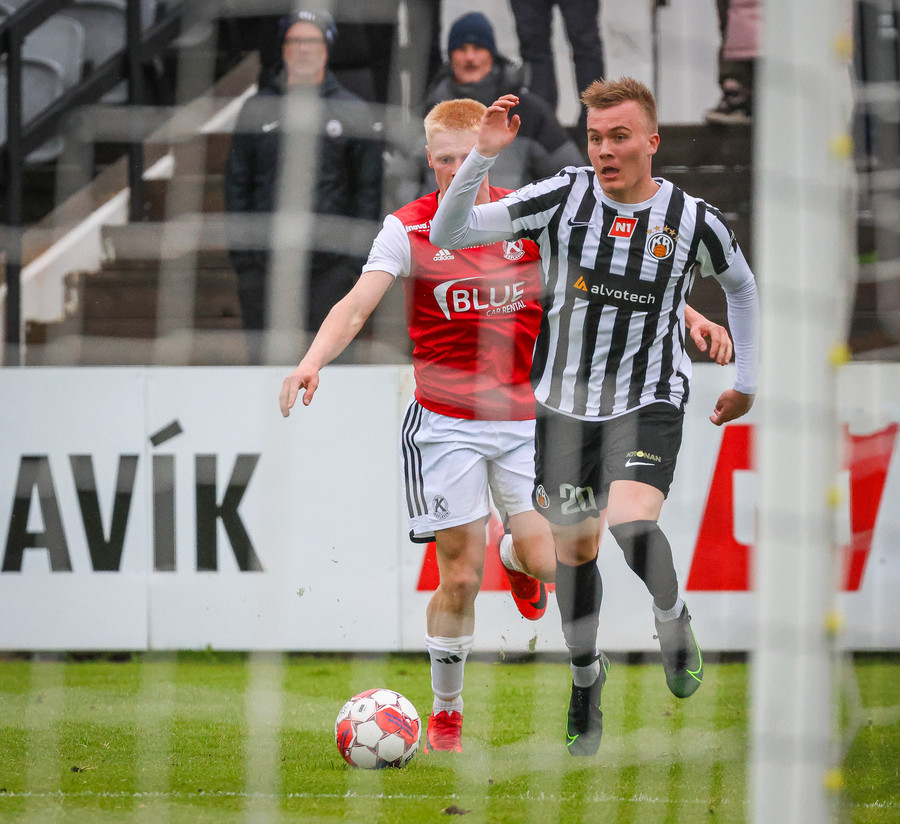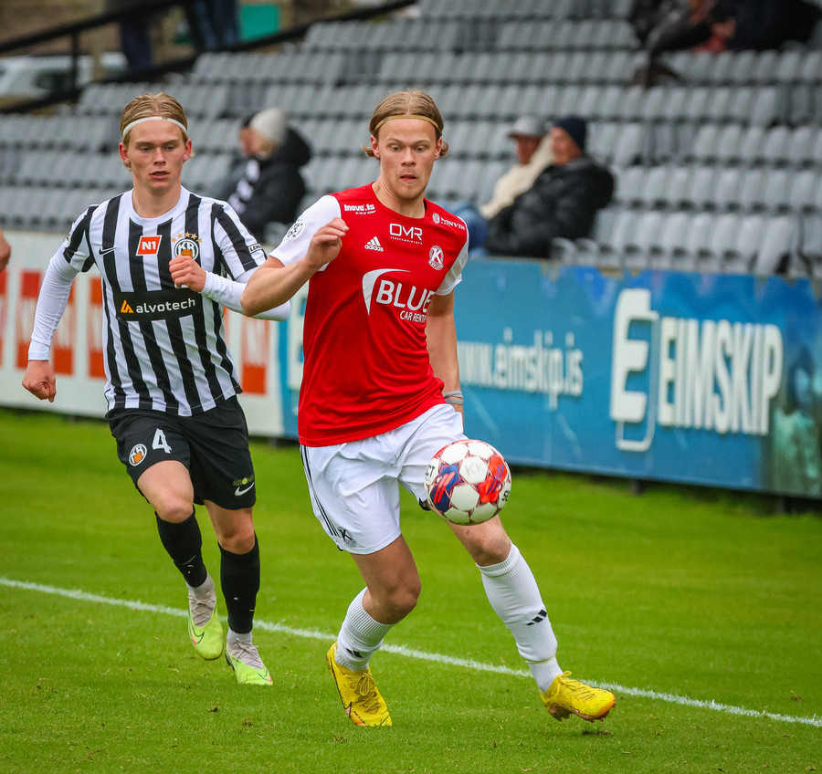 Hættuleg sending í gegn frá Atla, Benoný og Sigurður Bjartur elta og vinna hornspyrnu.