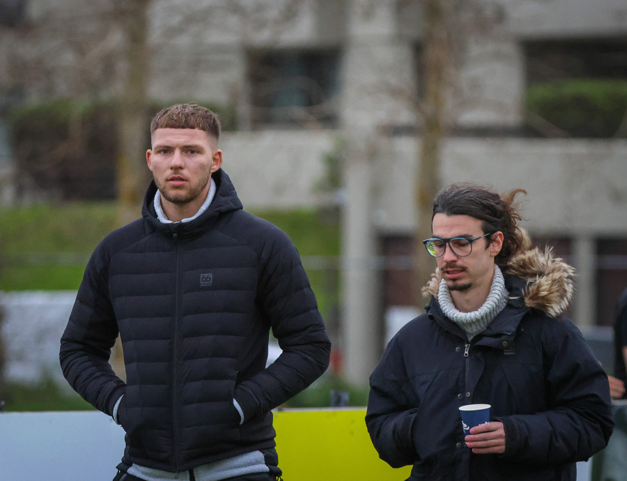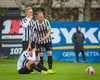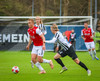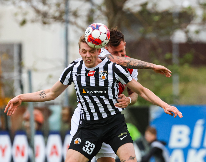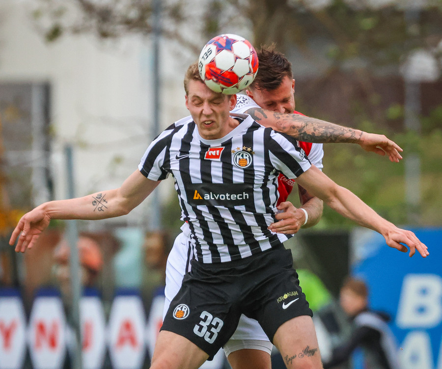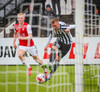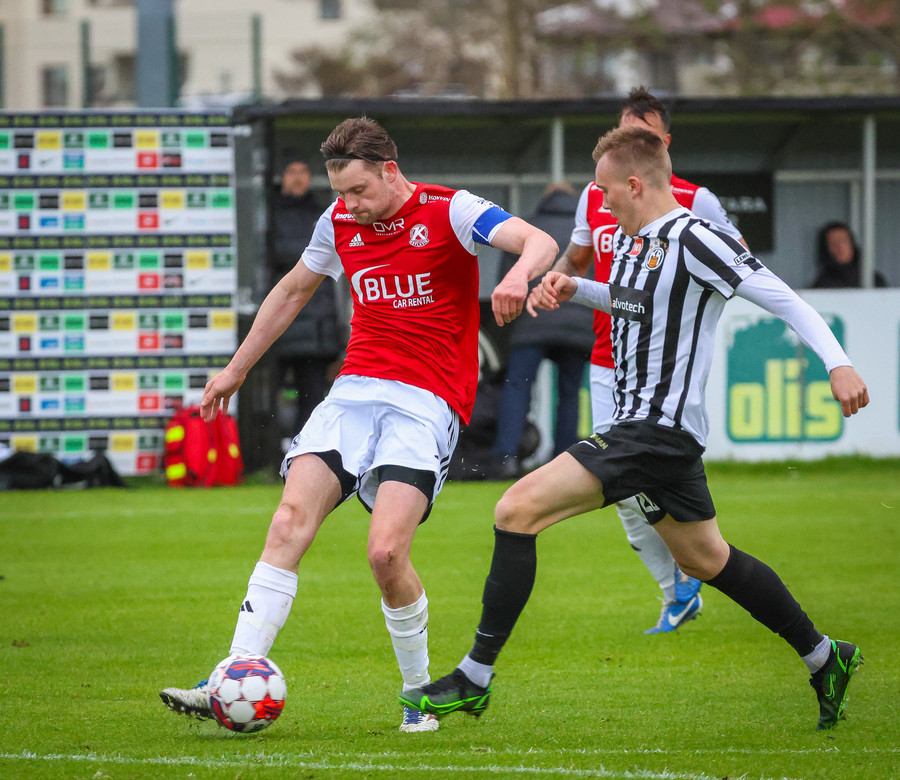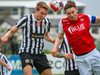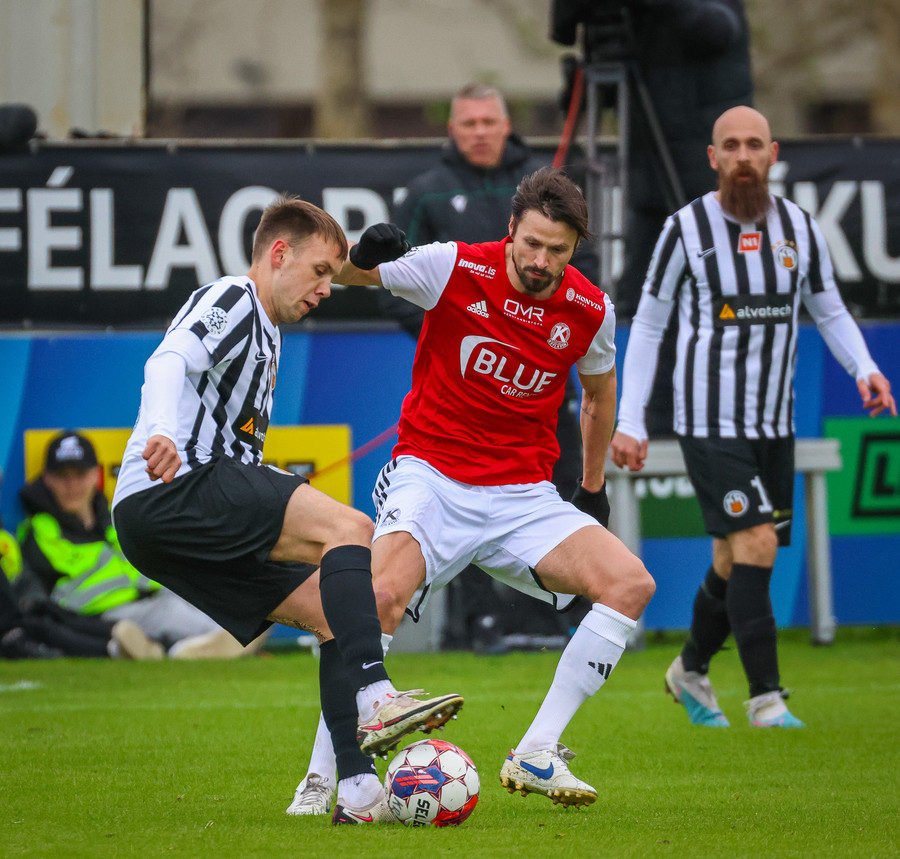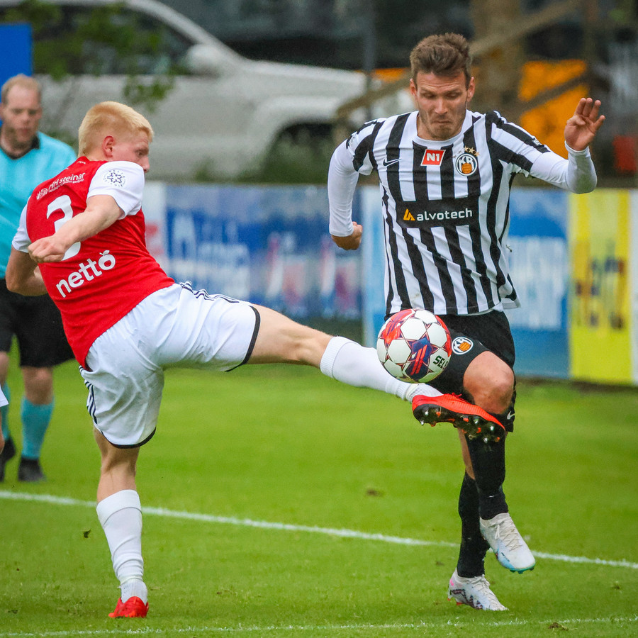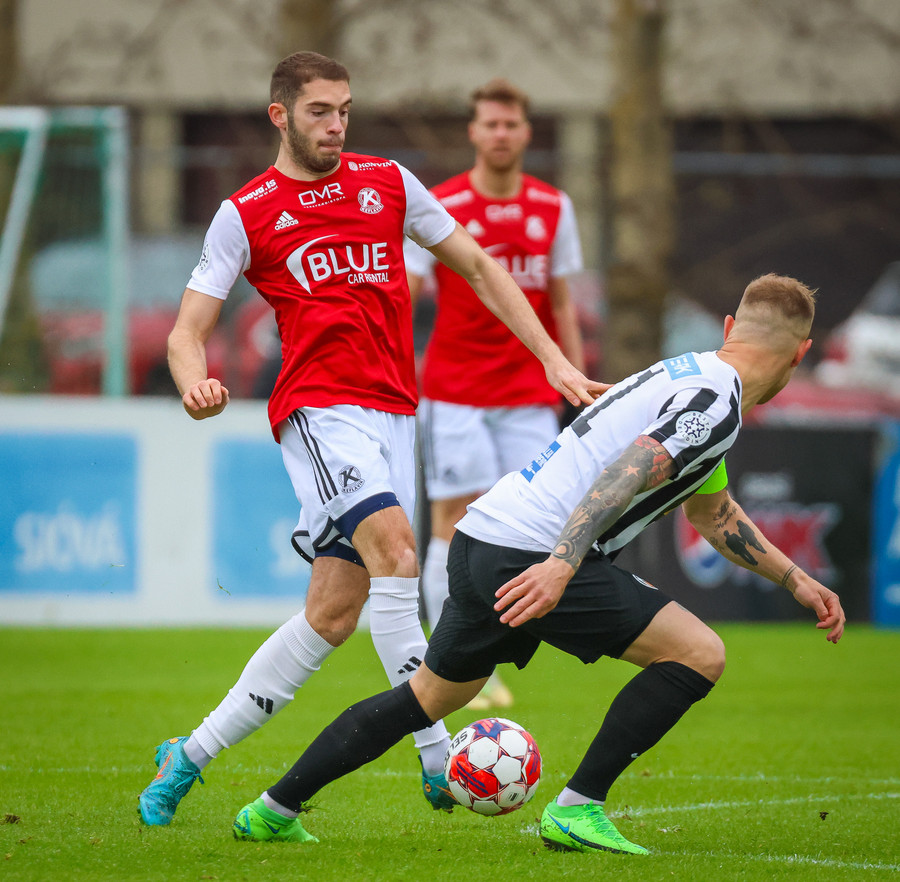 Mikil barátta milli Sindra og Elmars en Sindri hefur betur með því að stíga Elmar út og vinna markspyrnu.