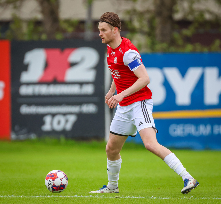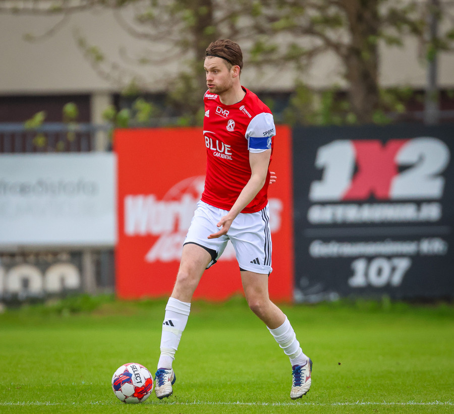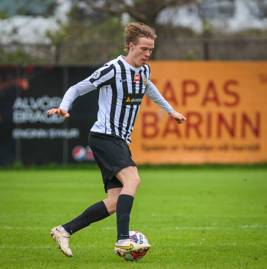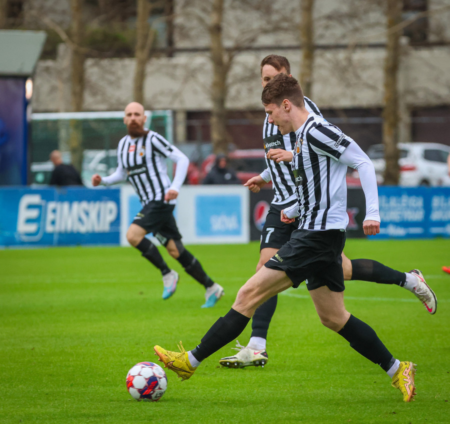 Kristinn Jónsson með skot með hægri fæti sem fer af varnarmanni og aftur fyrir, vel varist hjá Magnúsi sýnist mér.