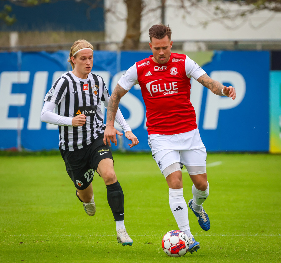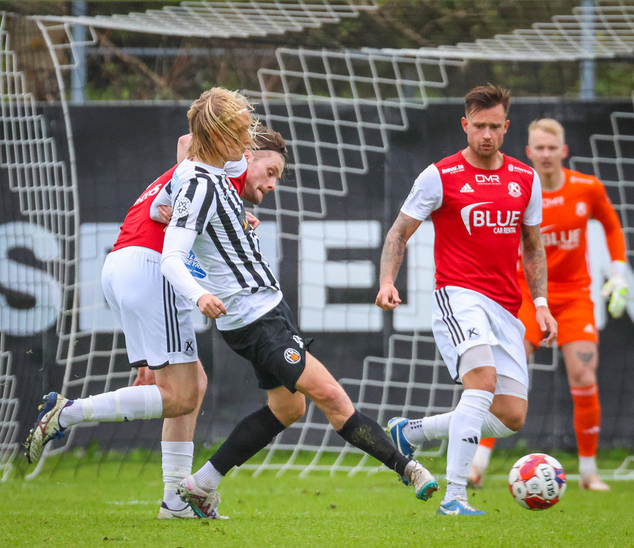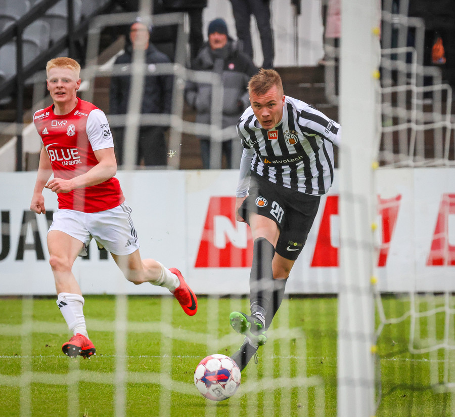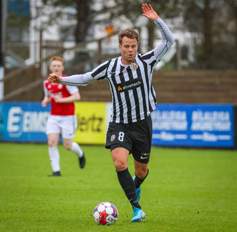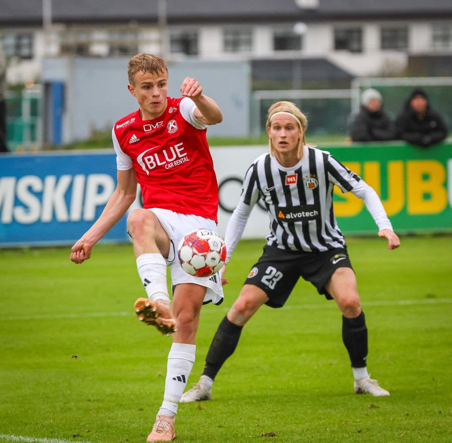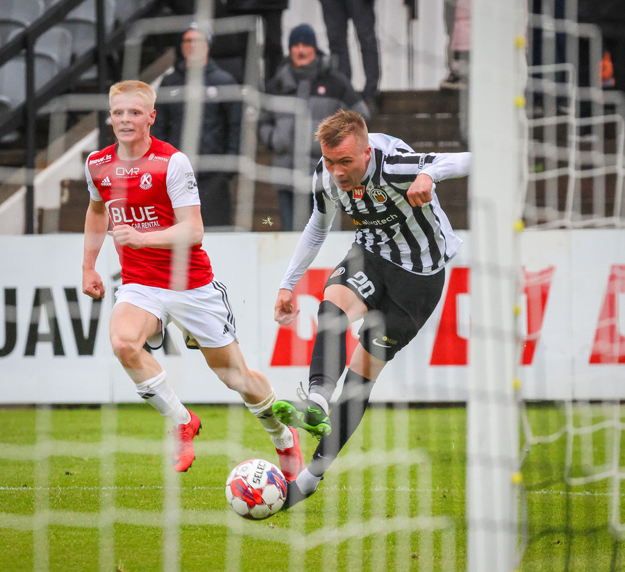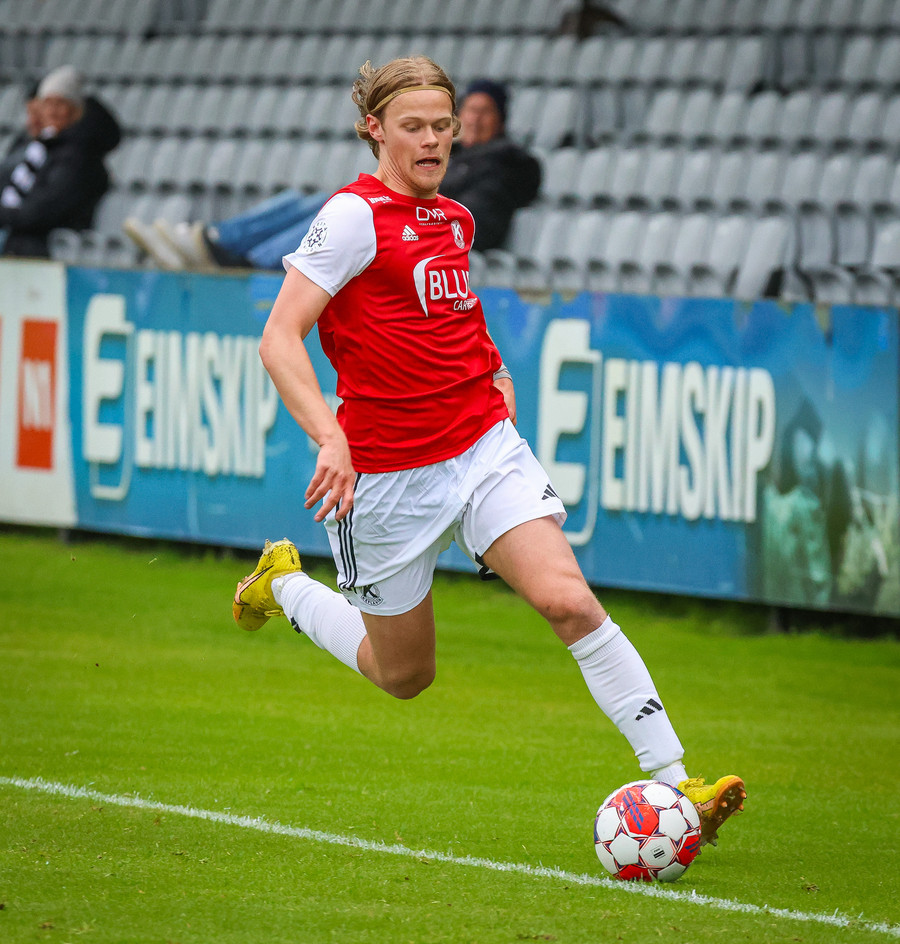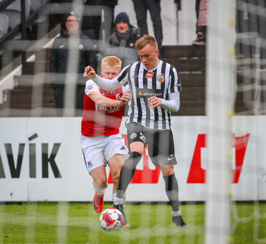 Kennie með góða sendingu í hlaupið hjá Öby en Norðmaðurinn nær ekki að lauma boltanum framhjá Mathias í markinu.