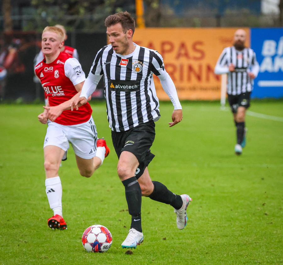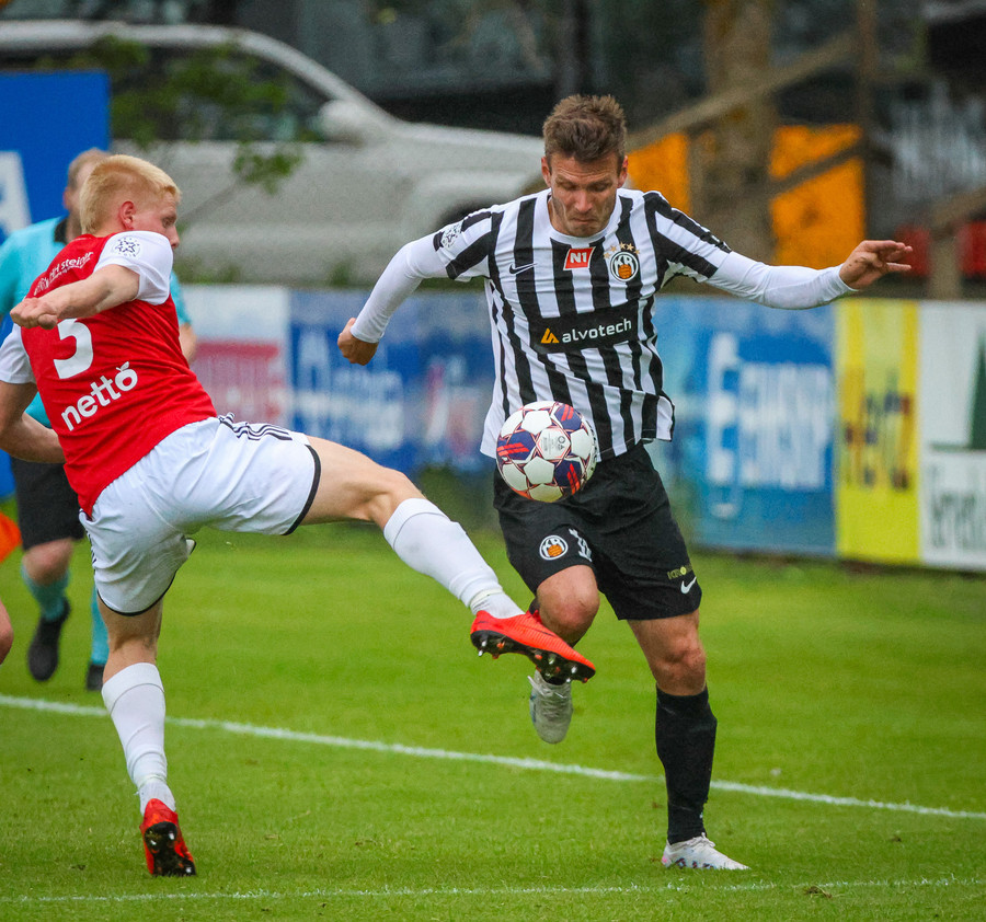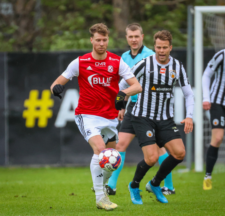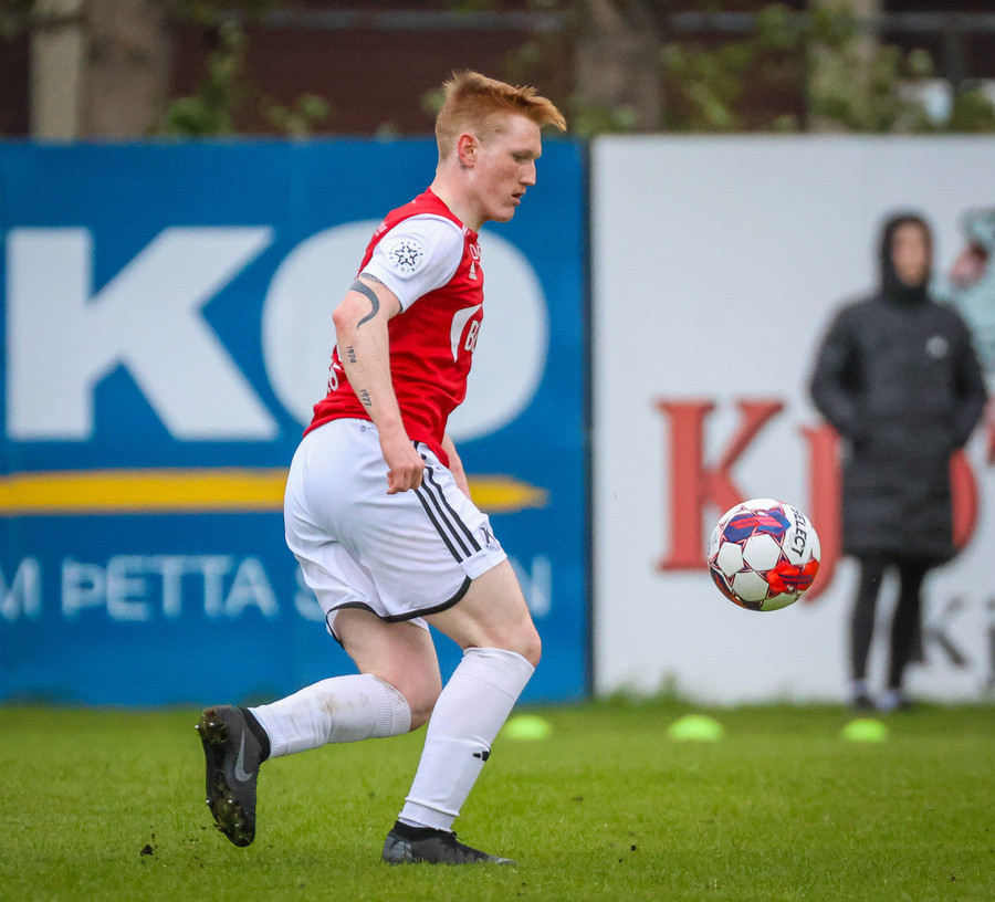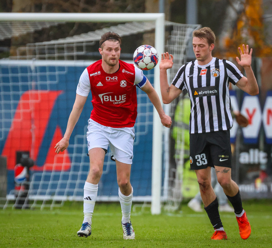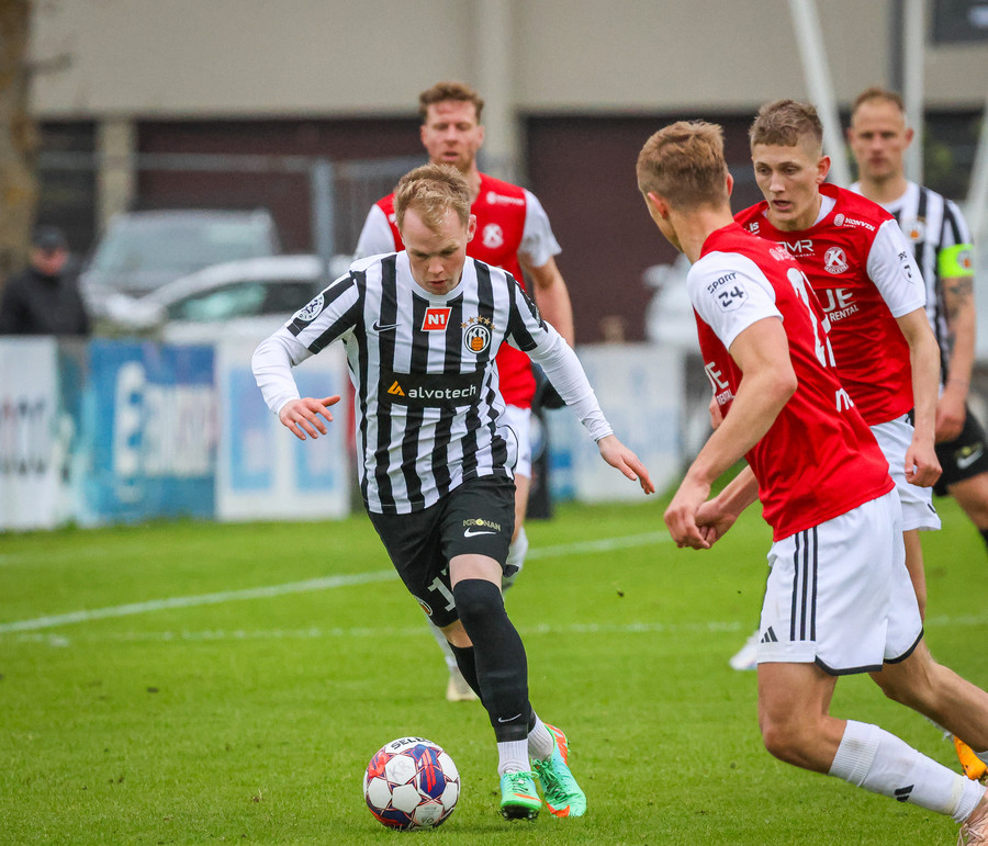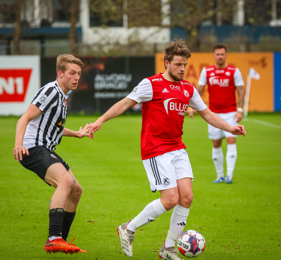 Kennie með góða sendingu í hlaupið hjá Öby en Norðmaðurinn nær ekki að lauma boltanum framhjá Mathias í markinu.