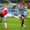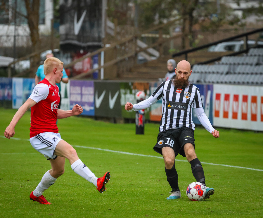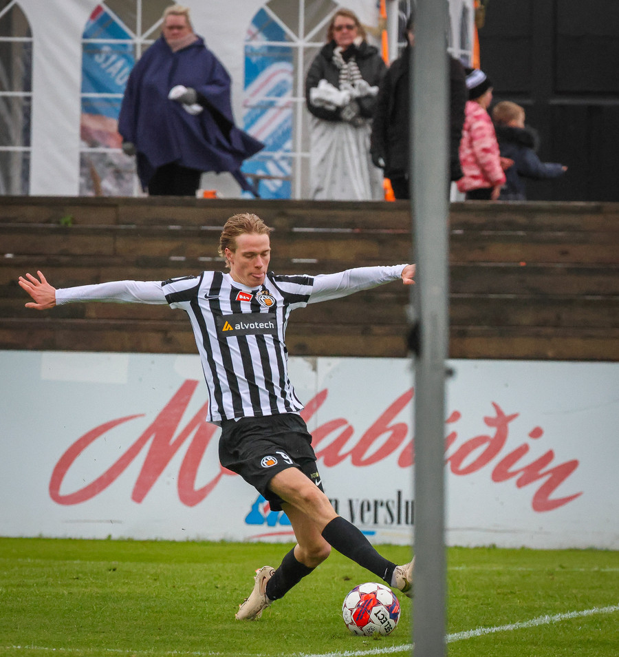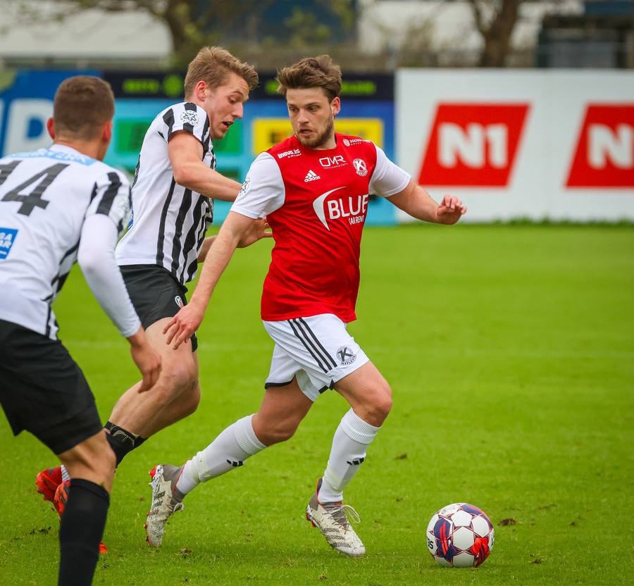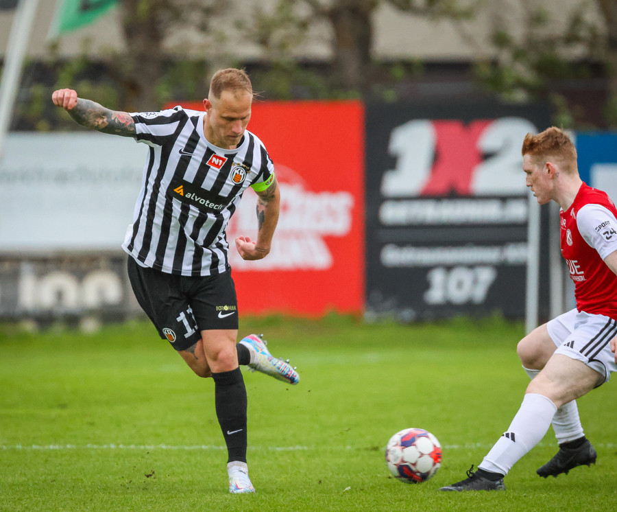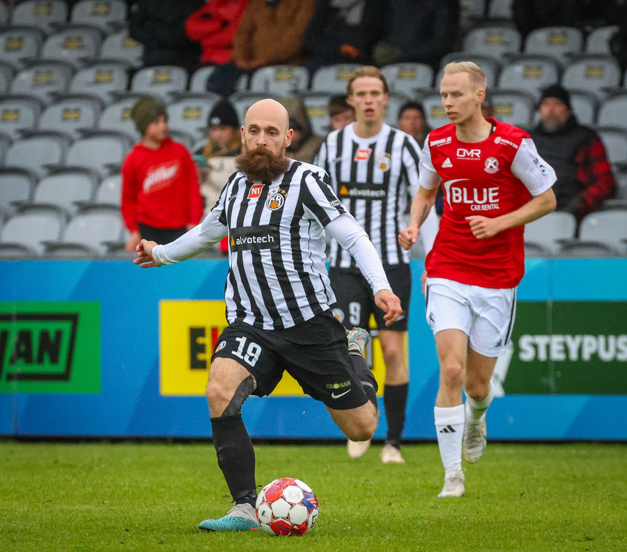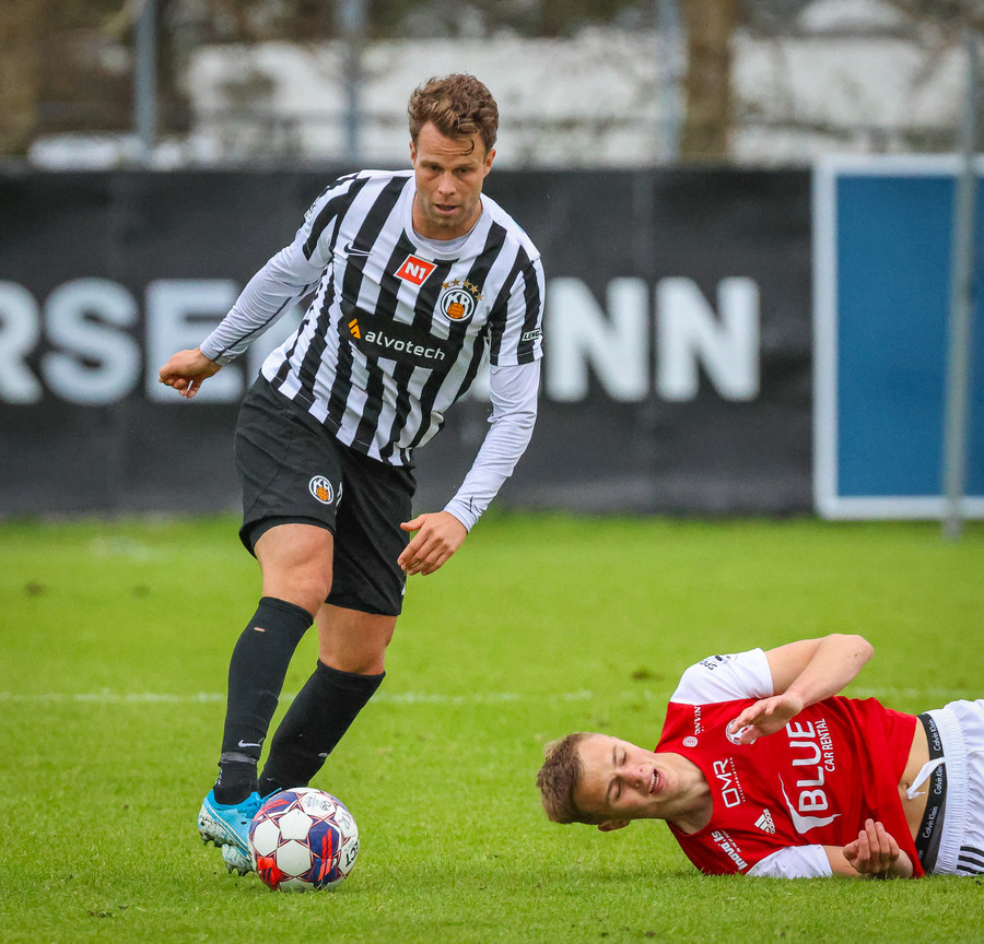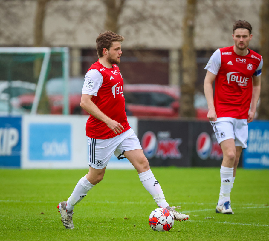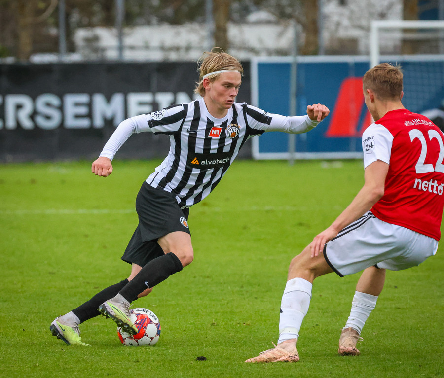 Kennie með góða sendingu í hlaupið hjá Öby en Norðmaðurinn nær ekki að lauma boltanum framhjá Mathias í markinu.