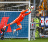 Þrumaði á markið, boltinn í stöngina fyrir aftan markið og í hliðarnetið. Hélt í smá stund að þessi hefði sungið í netinu.