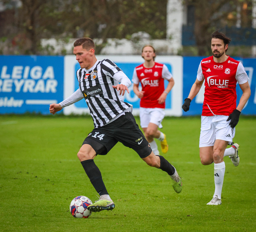 Hinu megin átti Kristinn flottan sprett og álitlega fyrirgjöf en Ásgeir var vel staðsettur inn á teignum og hreinsaði.