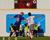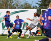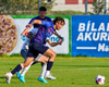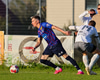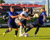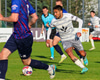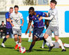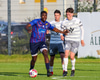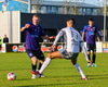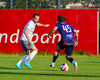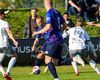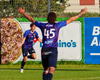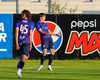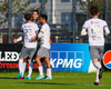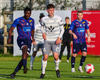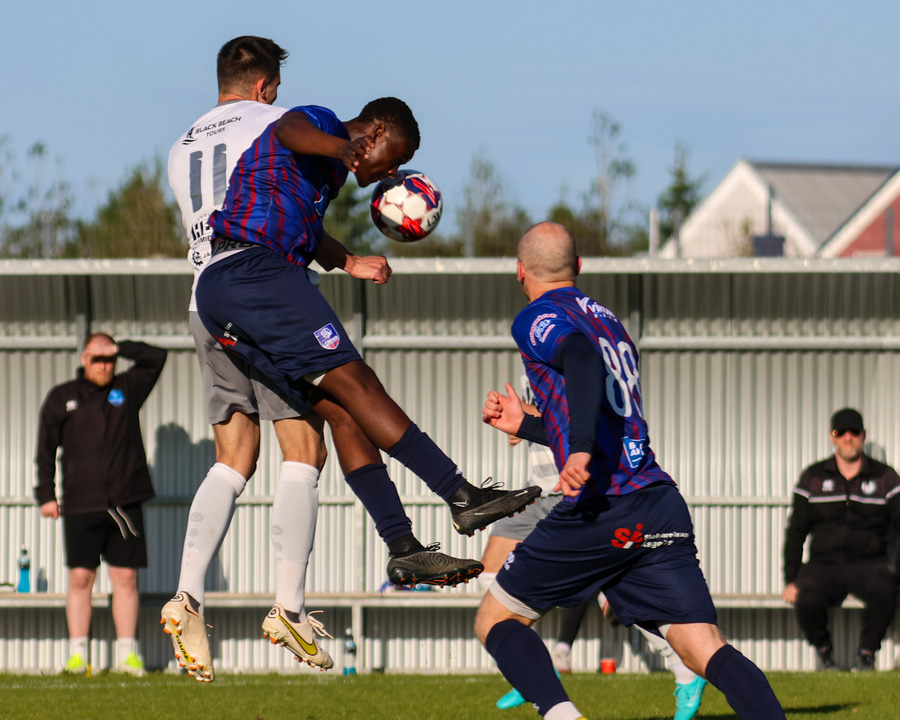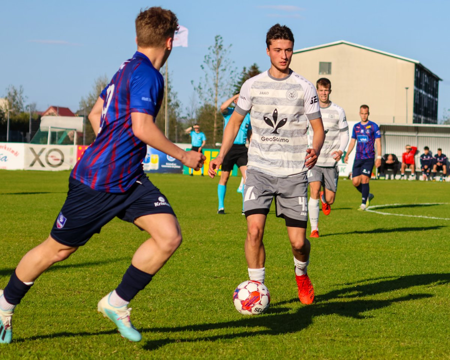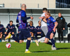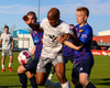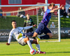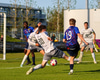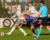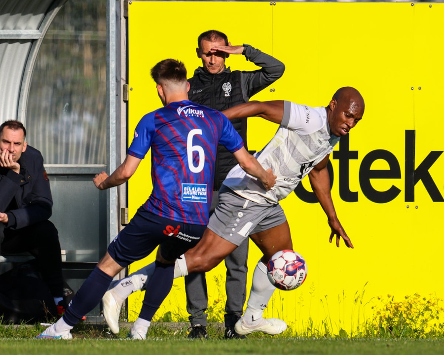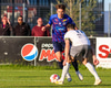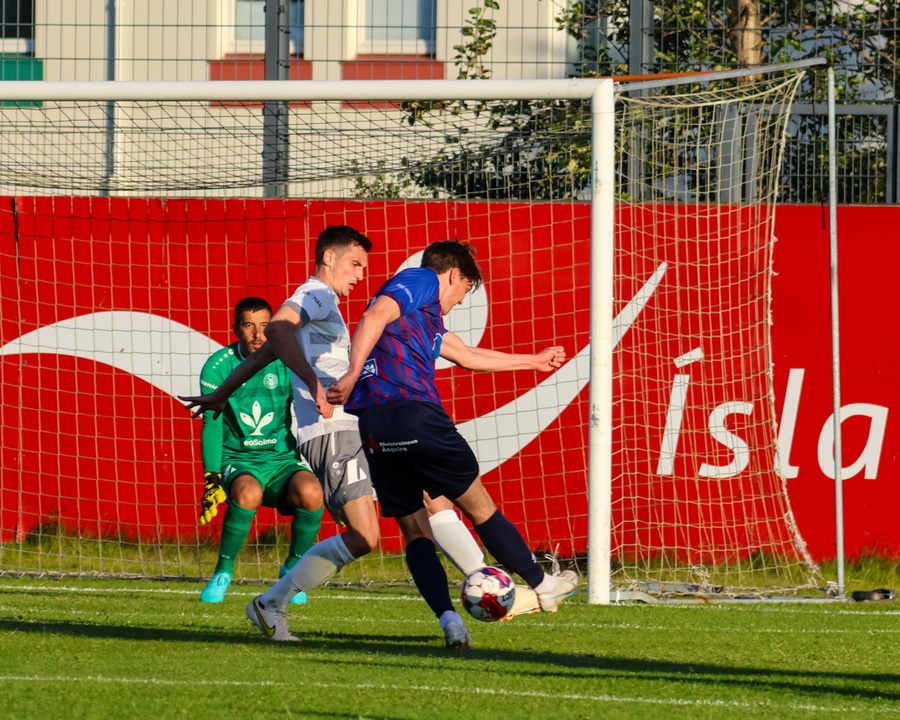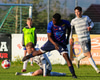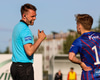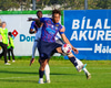 Rolin og Andi Hoti eru að berjast um boltan og Andi virðist fara með takana í fæturna á Rolin. Þórði fannst það allavega ekki og lætur leikinn halda áfram.