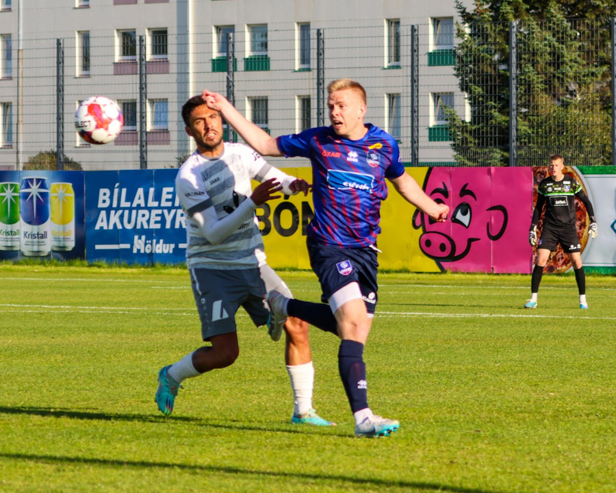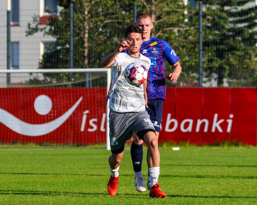 Jón Hrafn kemur með frábæran bolta fyrir teig á Omar Sowe sem er í dauðafæri. Hann skýtur í öfuga átt við hvert Ynachkov er að skutla sér en einhvervegin nær Yanachkov að skilja fótin eftir og verja með honum!