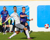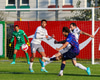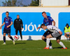 Yanachkov í smá skógarhlaupi eftir langan bolta fram, hann nær ekki alveg til boltans og þarf því að hlaupa út úr teig til að þruma boltanum útaf.