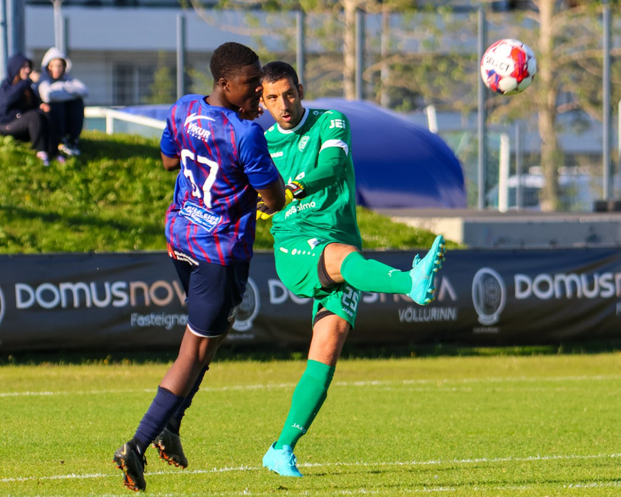 Ivo Braz sendir Viktor í vitlaust horn og skotið hans fast niður í vinstra hornið