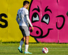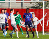 Boltinn kemur inn í teig úr horninu en ekkert verður úr því