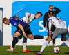 Rolin keyrir í gegnum vörnina eins og jarðýta, enginn nær að ýta honum af boltanum. Hann tekur svo skotið þegar hann kemur að markinu en það fer í hliðarnetið