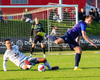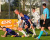 Baldvin Þór liggur þjáður í grasinu eftir hörku tæklingu sem hann fór í, hann stendur þó upp og virðist ætla halda áftam leik.