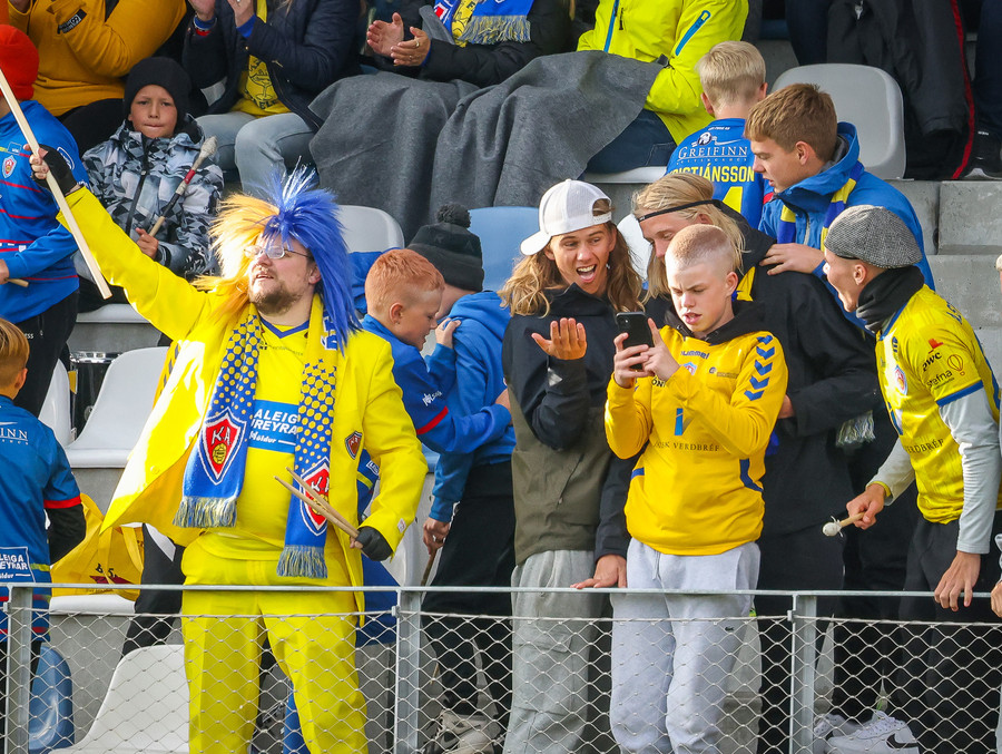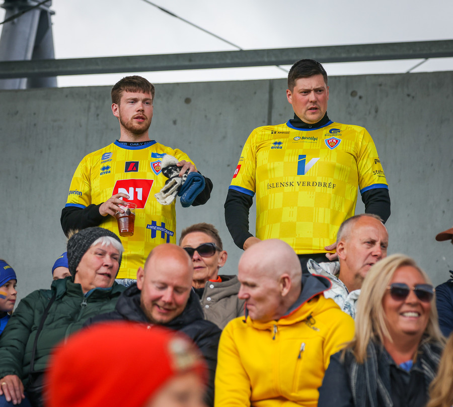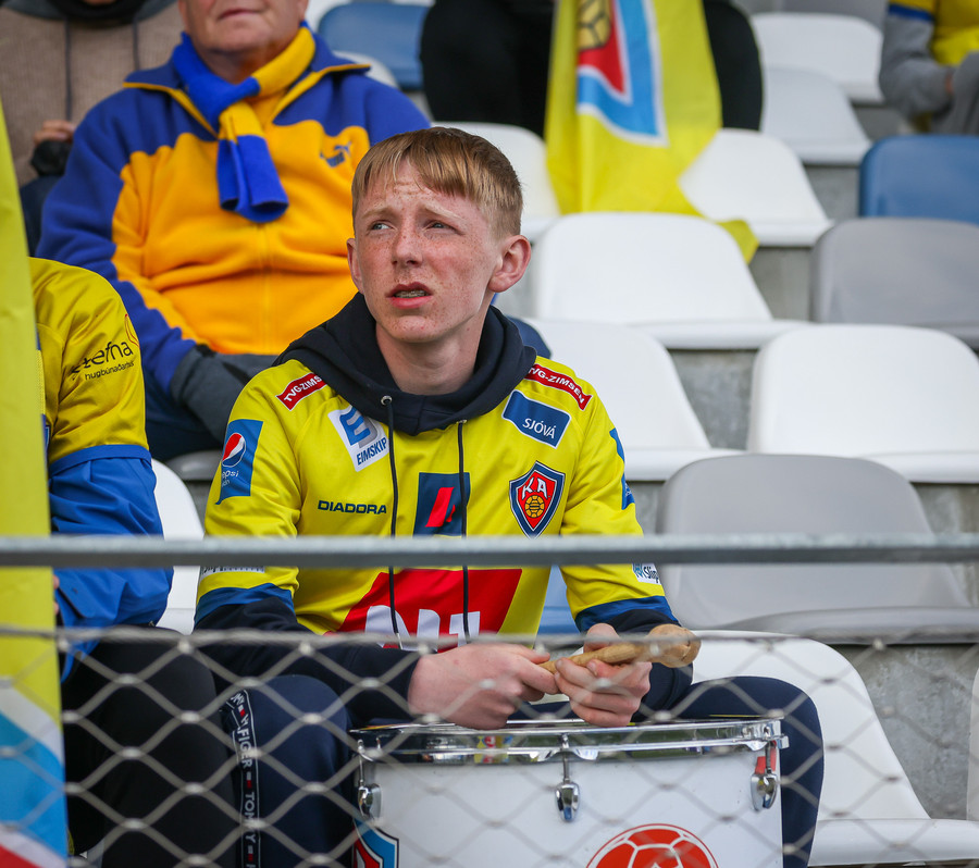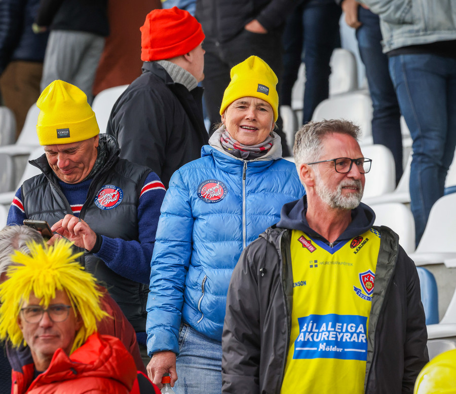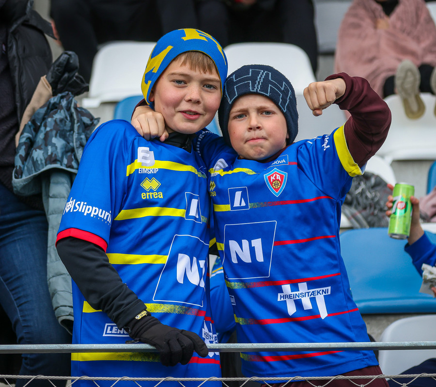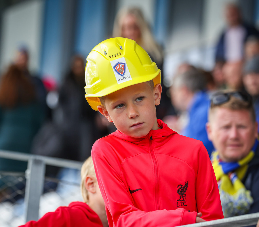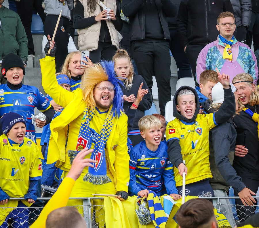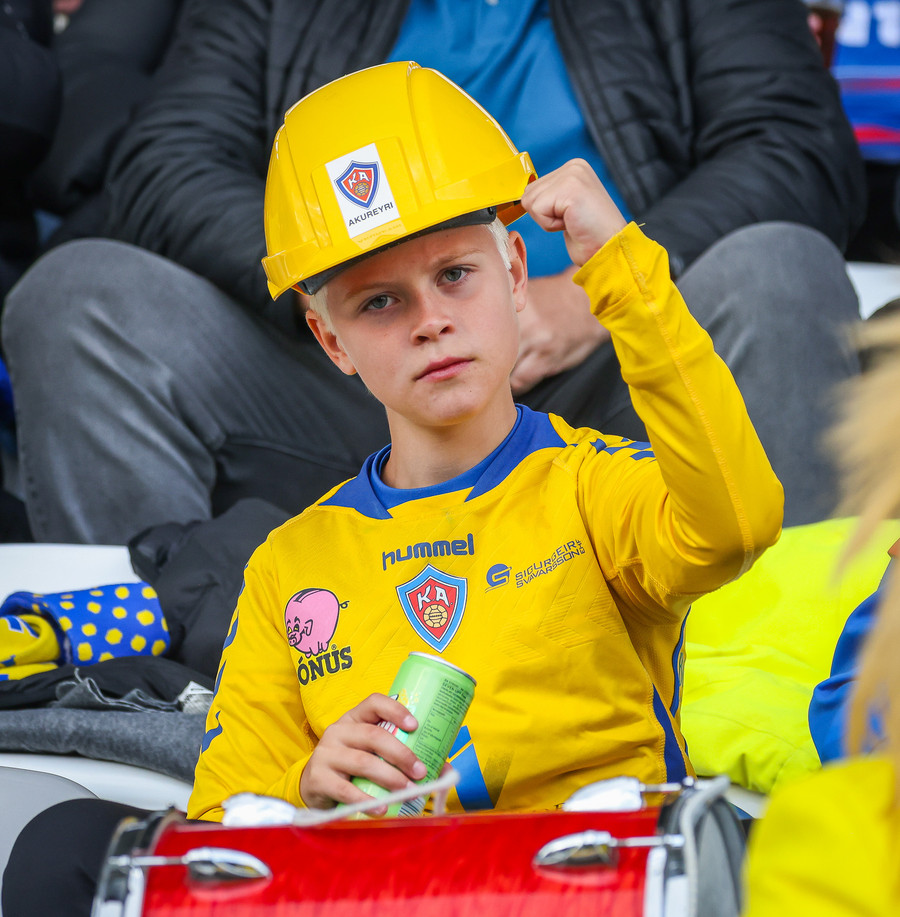Þá er veislan að fara byrja, KA lagið hljómar um völlinn og vallarþulur byrjaður að þylja upp byrjunarlið
