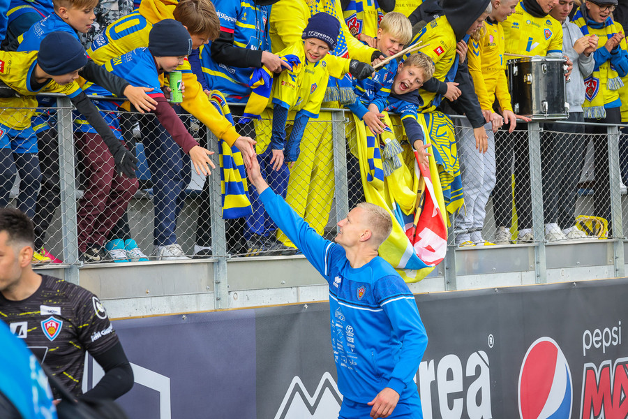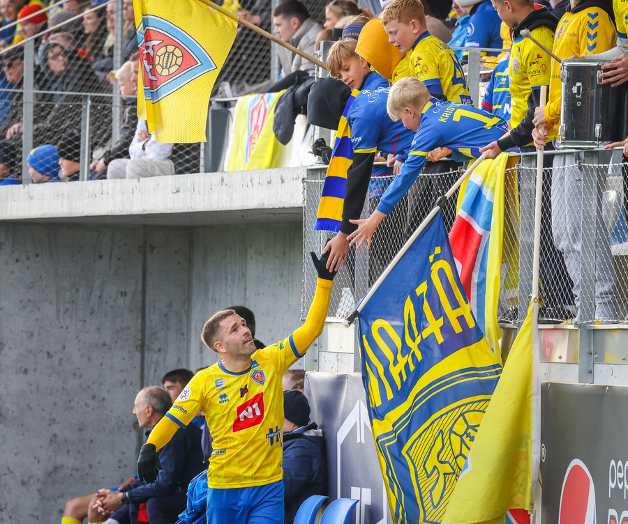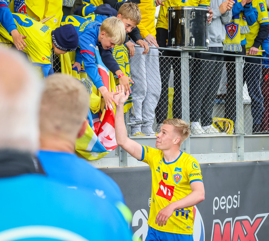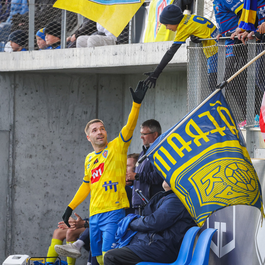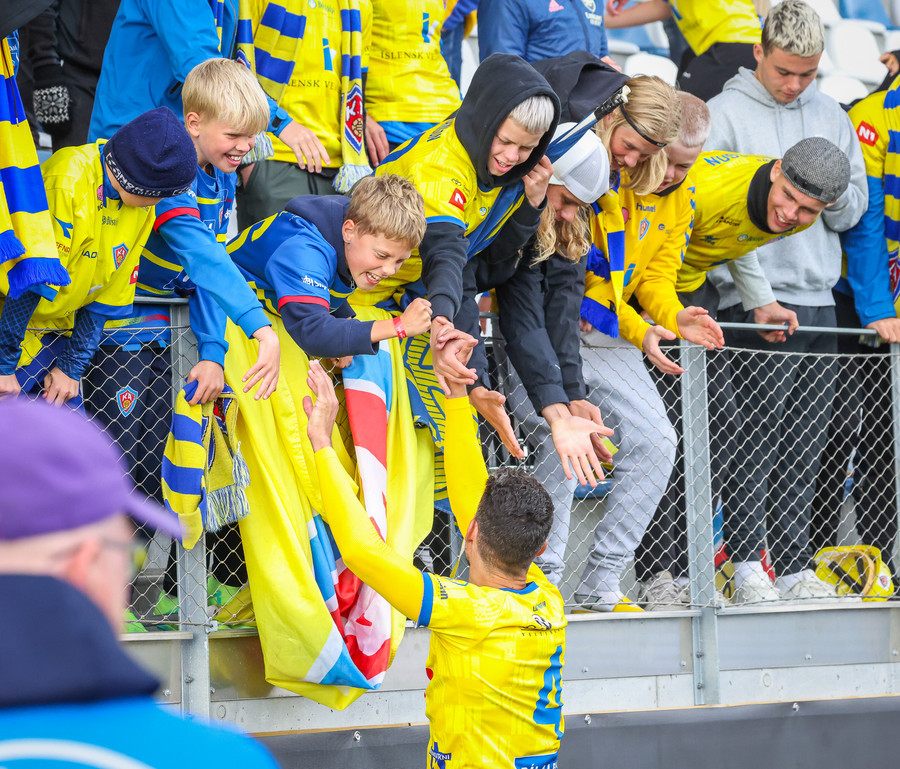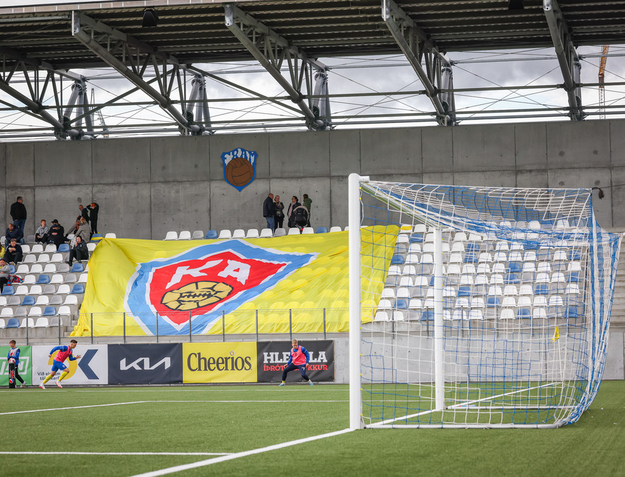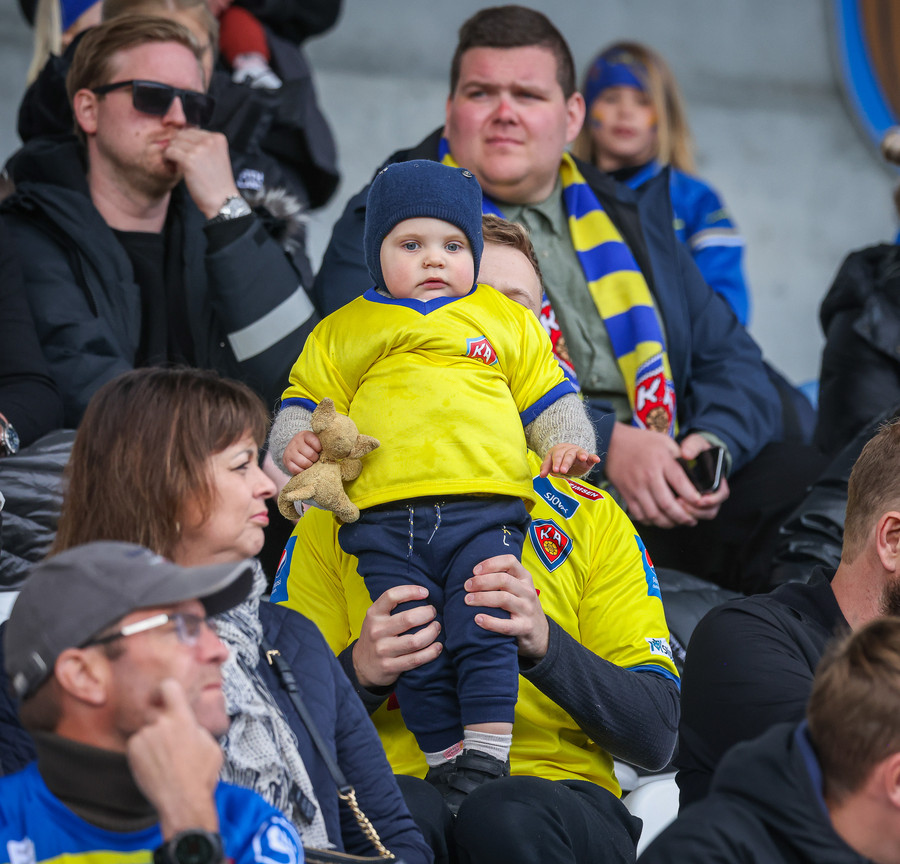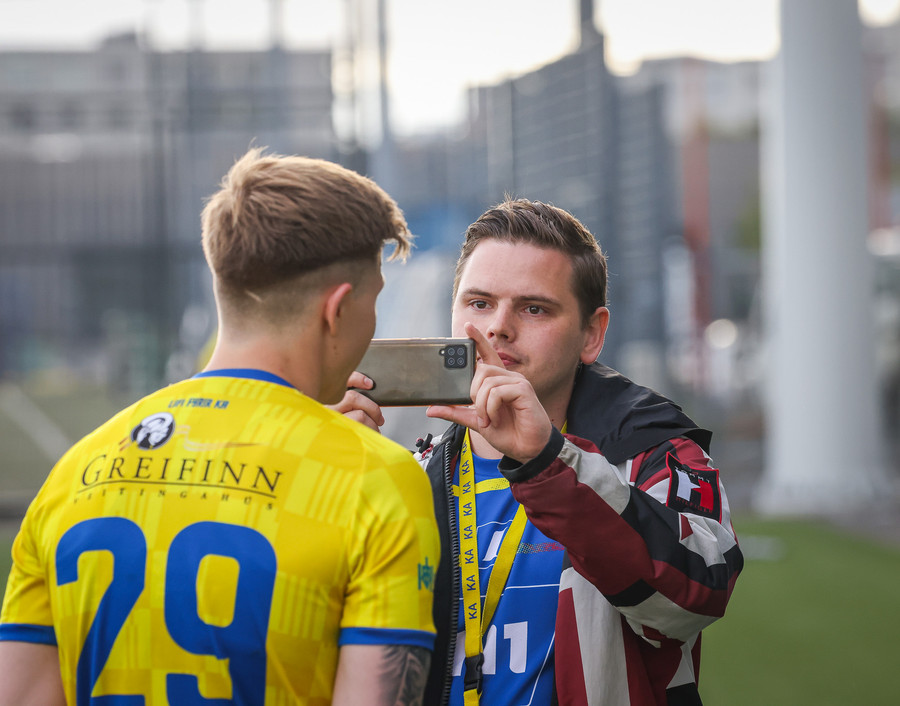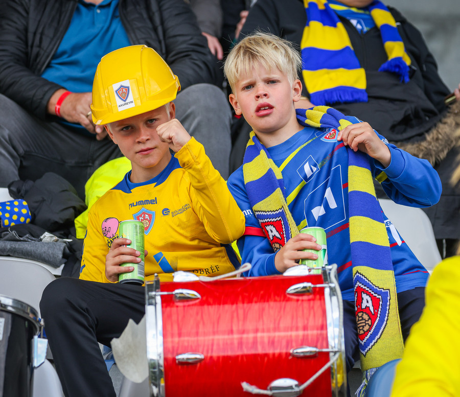 Þá er veislan að fara byrja, KA lagið hljómar um völlinn og vallarþulur byrjaður að þylja upp byrjunarlið