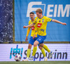 Grímsi tekur, hann finnur Svein inn í teig sem tekur skotið en í varnarmann.