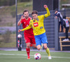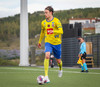 Sveinn vinnur boltan hátt upp á velli og setur boltan á Grímsa sem tekur skotið en í þetta skipti fer þessi negla langt framhjá.