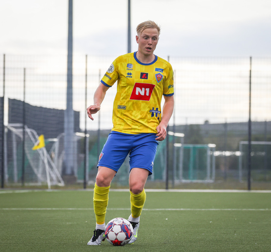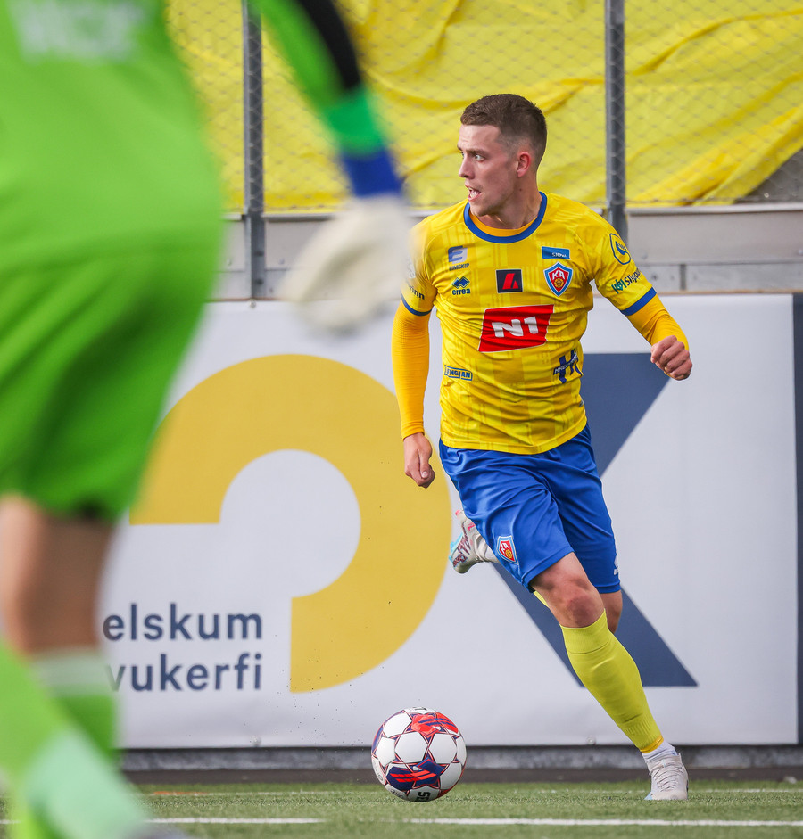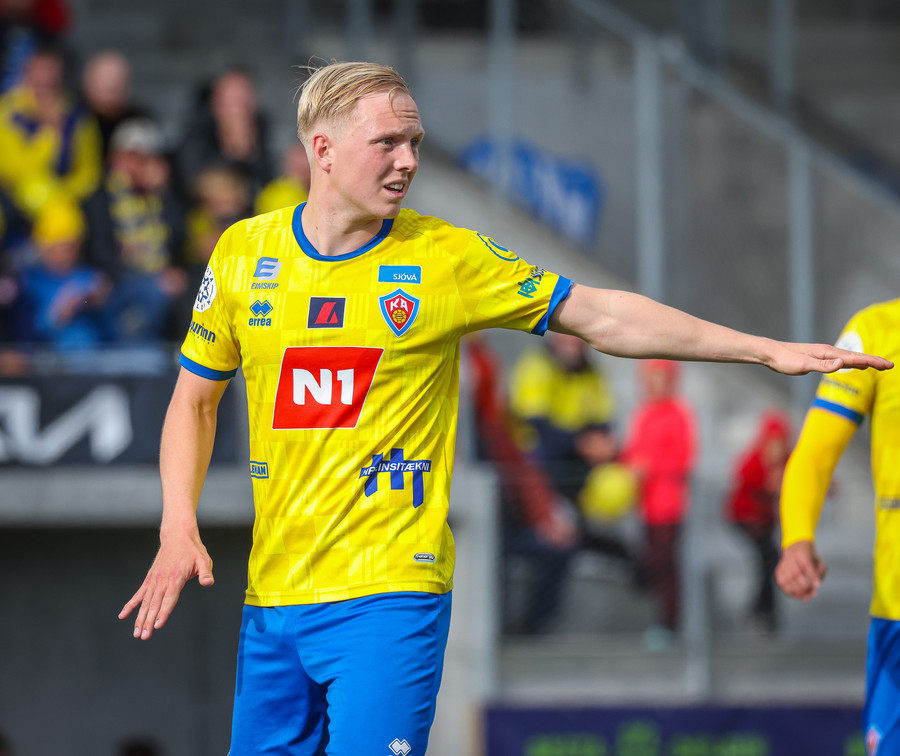 KA strax í góðri sókn! Grímsi gerir vel og hleypur upp völlinn og finnur Jakob inn á teig sem skýtur úr þröngu færi, það er varið en KA vinnur horn.