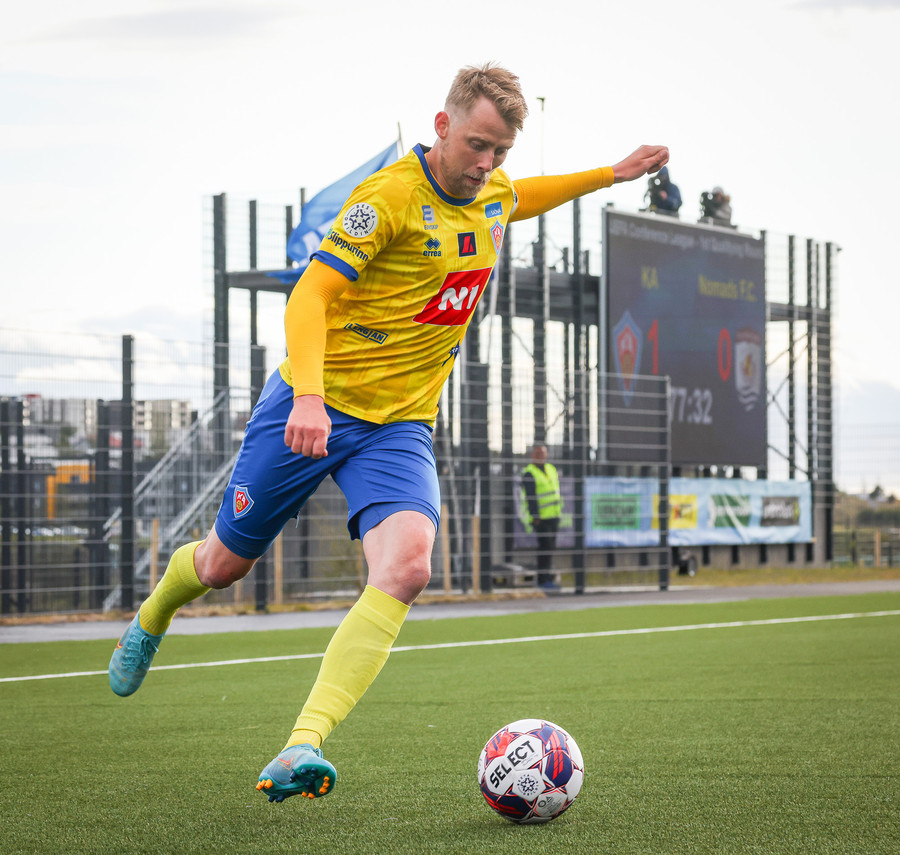 KA vinnur horn eftir að Jakob reynir sendingu fyrir en hún fer af varnarmanni.