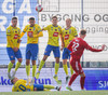 Gestirnir taka langt innkast og þar af leiðandi verður smá skallatennis inn á teig en KA hreinsar í horn.