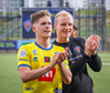 Neil Gibson þjálfari velska liðsins Connah's Quay og John Disney leikmaður þeirra voru einnig mættir á fjölmiðlafundinn og þeir koma þá í viðtal.