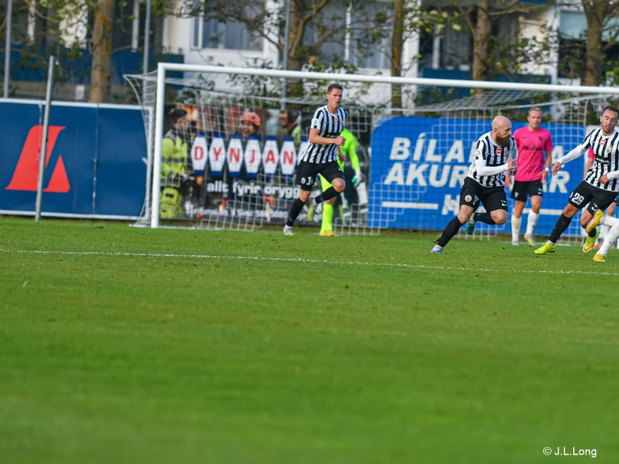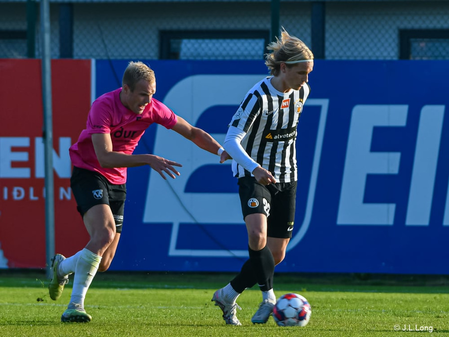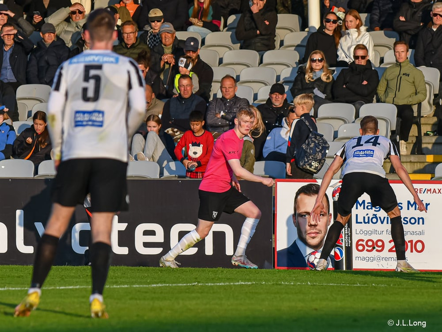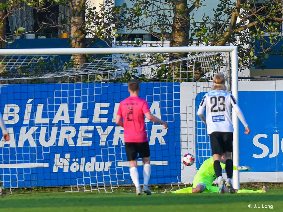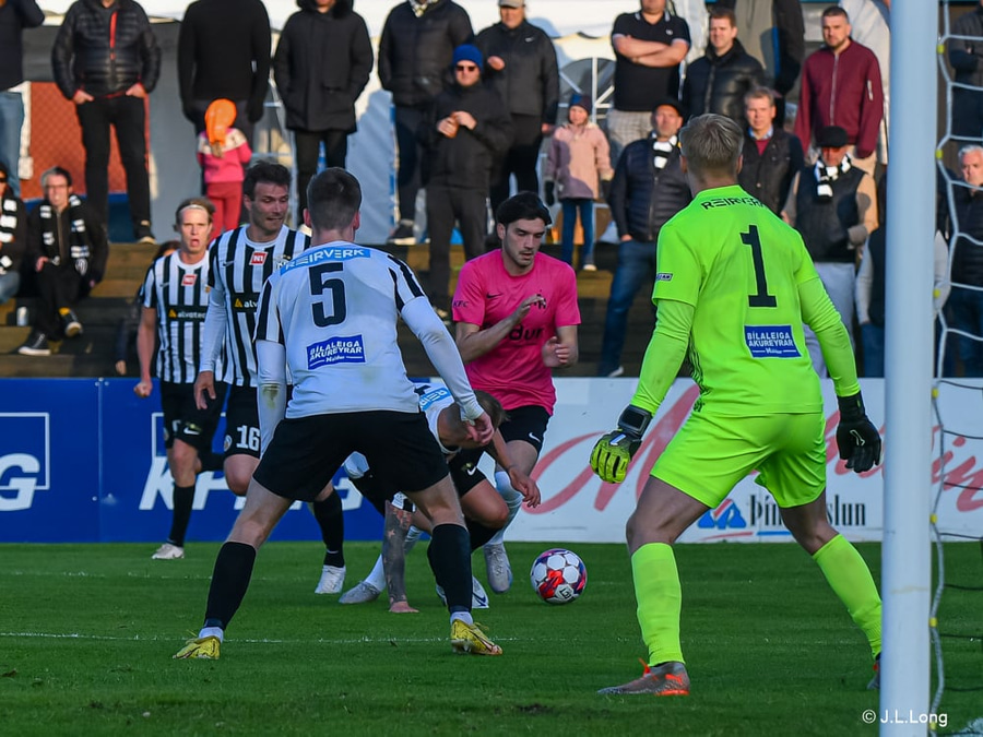 Þarna átti Benoný að gera betur. Theodór Elmar þræddi boltann í gegn á hann og Benoný skýtur á markið en skotið afar misheppnað og fer vel framhjá.