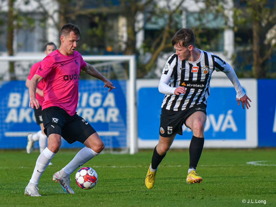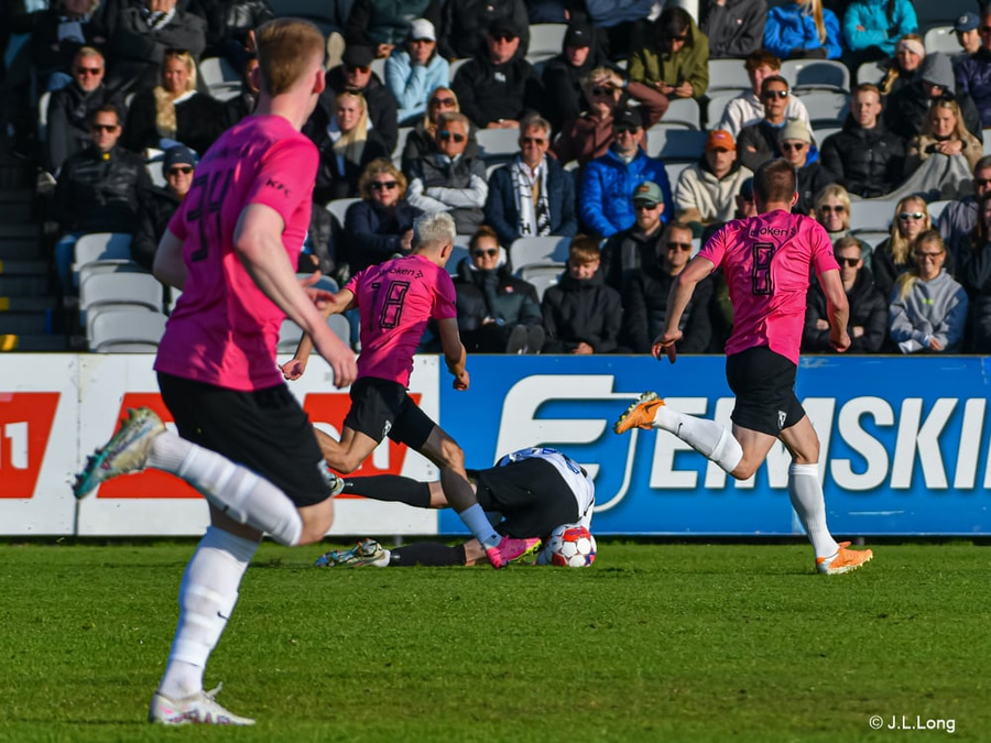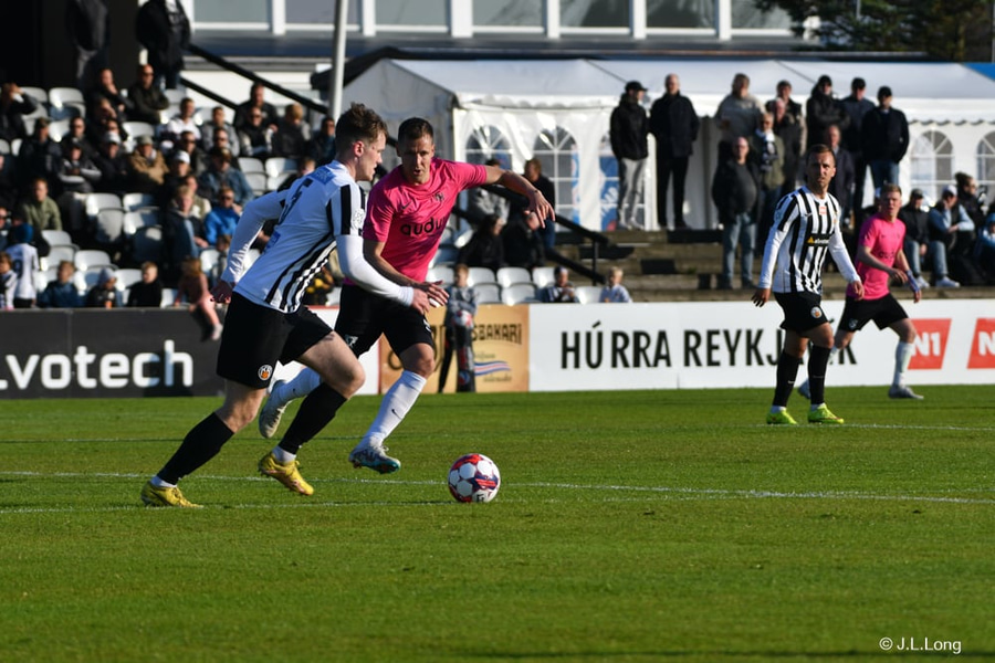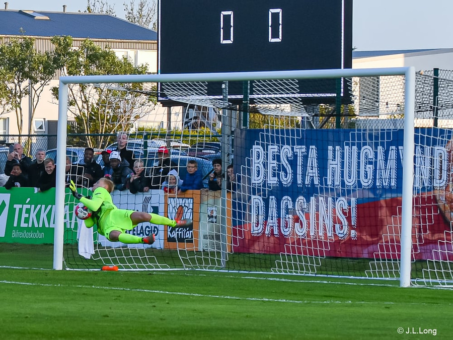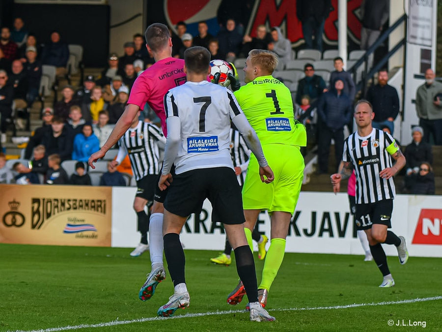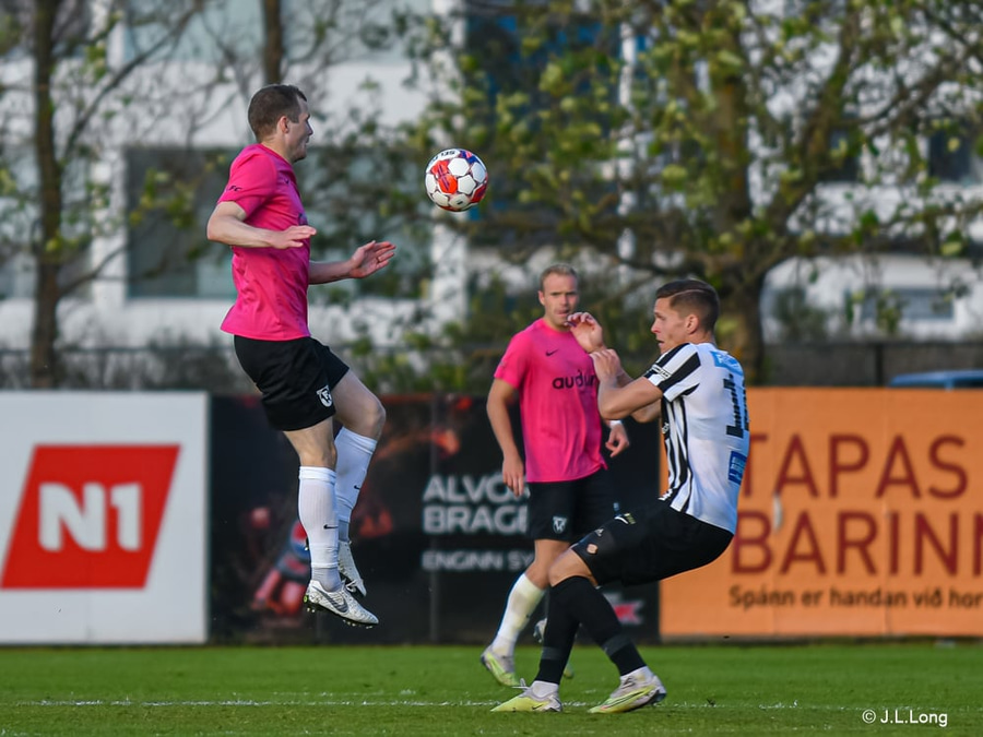 Þarna átti Benoný að gera betur. Theodór Elmar þræddi boltann í gegn á hann og Benoný skýtur á markið en skotið afar misheppnað og fer vel framhjá.