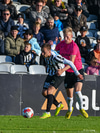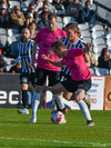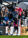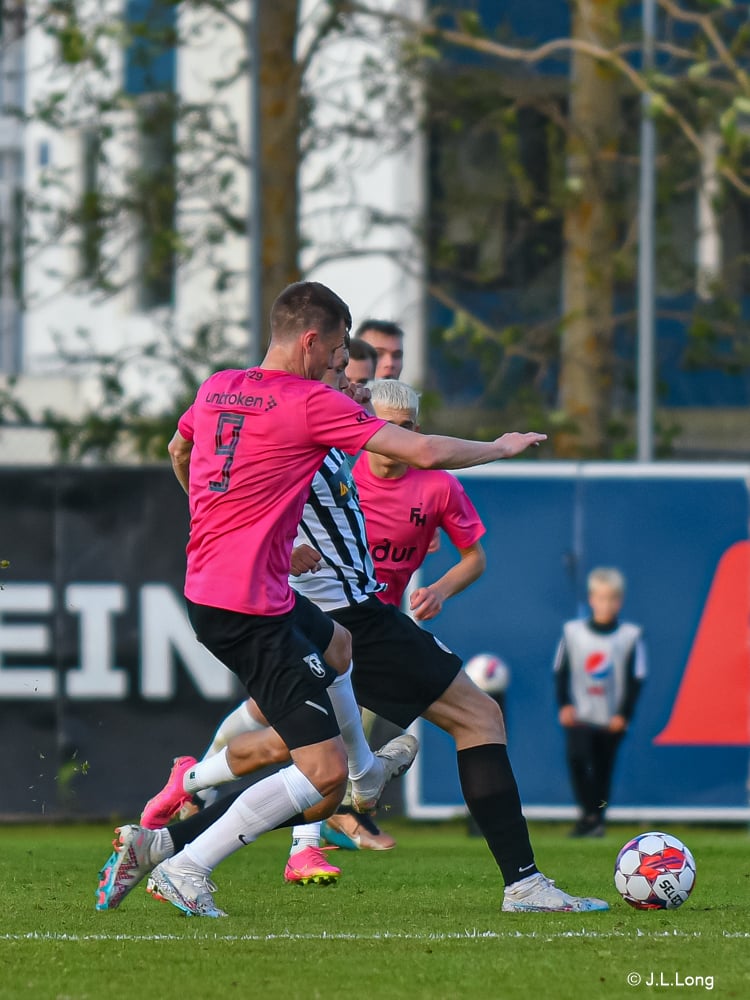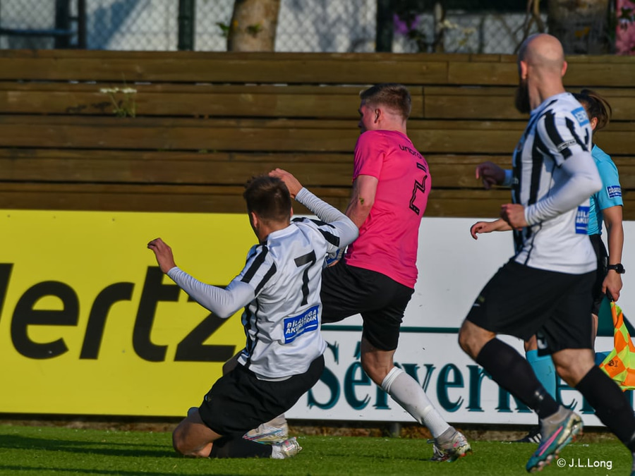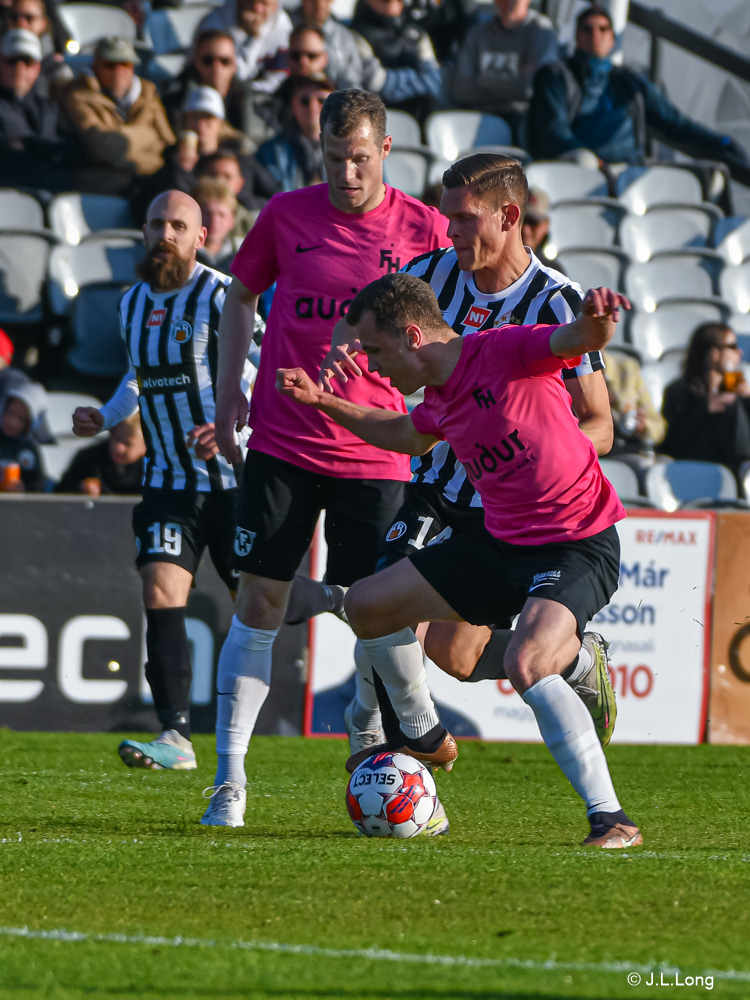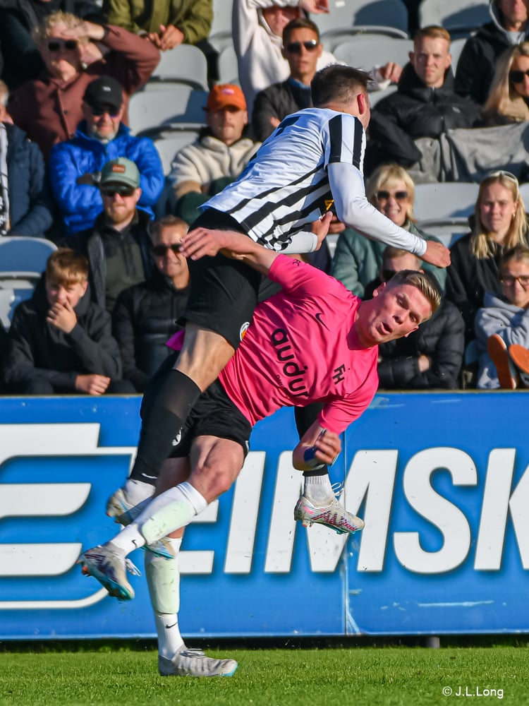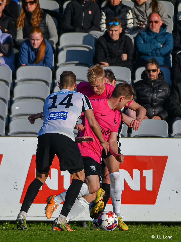 Menn eru greinilega ekki komnir út á völl til að eignast vini. Mikil harka. Davíð Snær stálheppinn að fá ekki spjald fyrir tæklingu núna