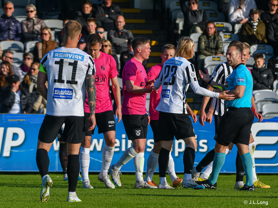Ási Þórðar að fá gult gegn sínum gömlu félögum fyrir mjög kraftmikla tæklingu. Við fáum greinilega mikla hörku hér í dag.