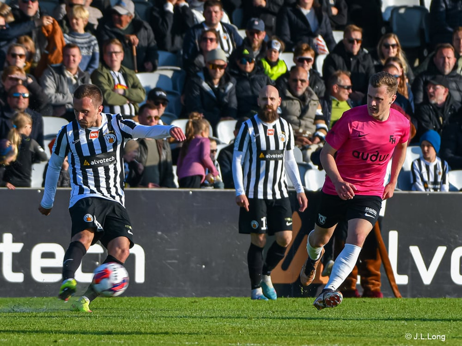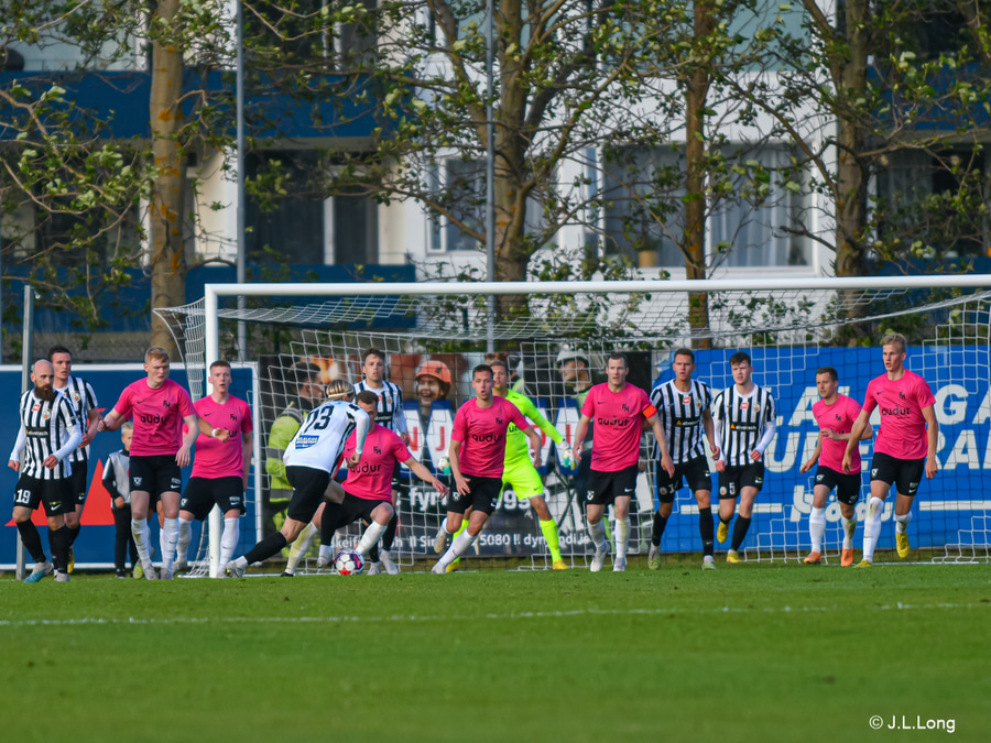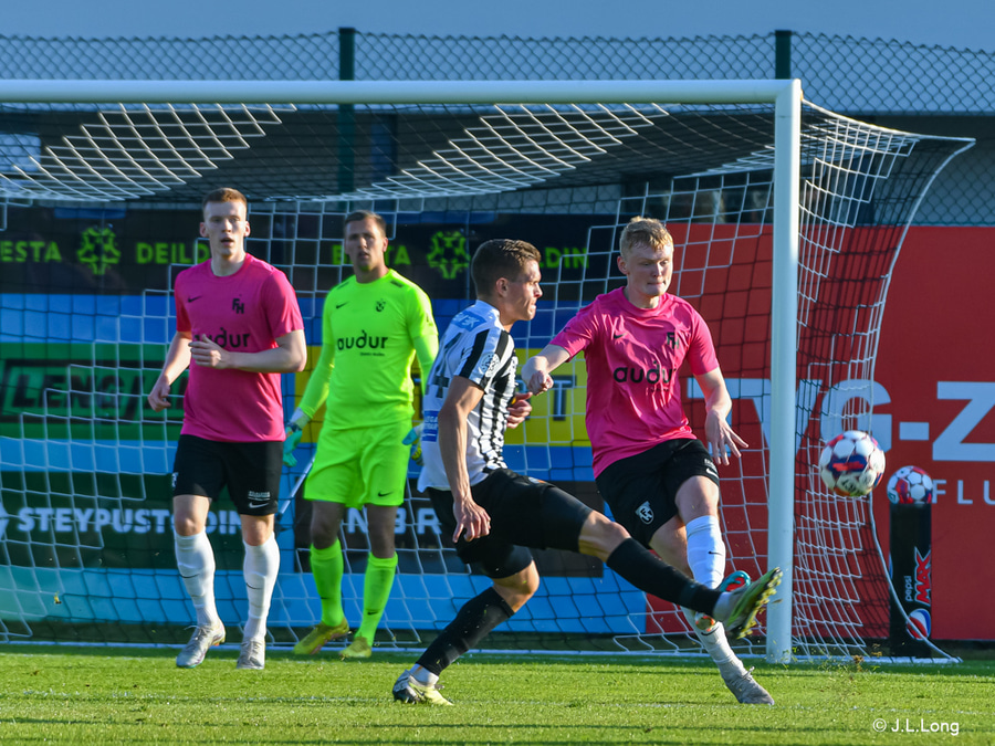 Kjartan Henry með ágætis viðstöðulausa skottilraun eftir fyrirgjöf frá vinstri en skotið fer í hliðarnetið.