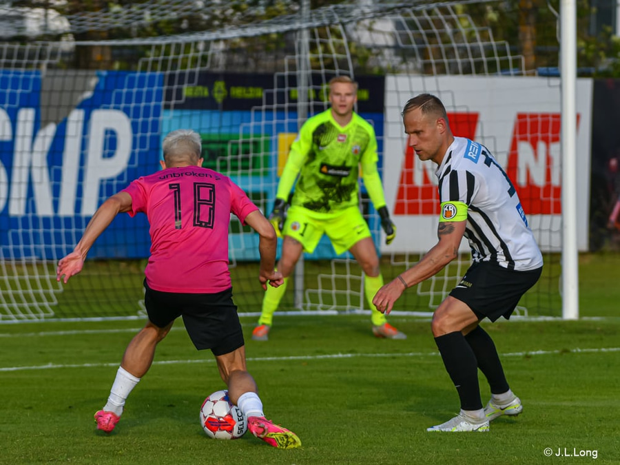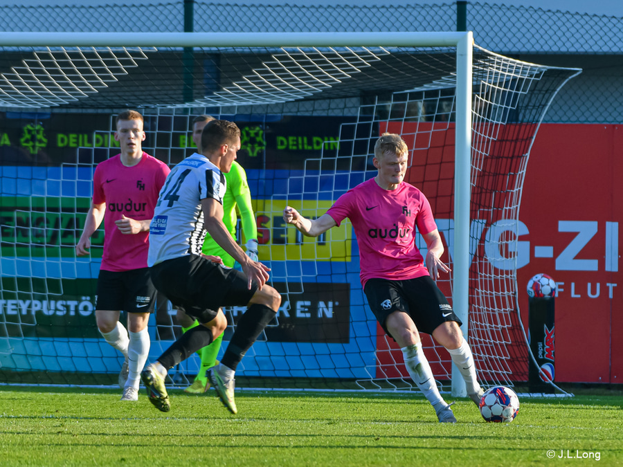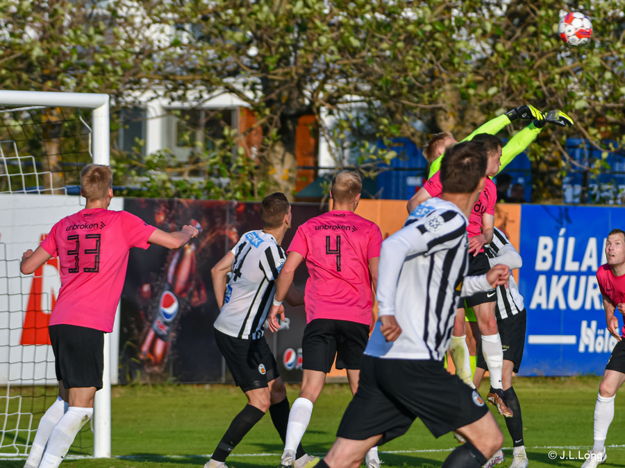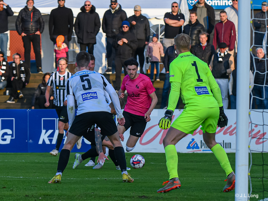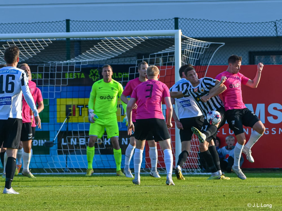 Þarna var Davíð Snær ansi nálægt því að koma gestunum yfir. Ástbjörn með fyrirgjöfina út í teiginn en skot Davíðs er naumlega framhjá