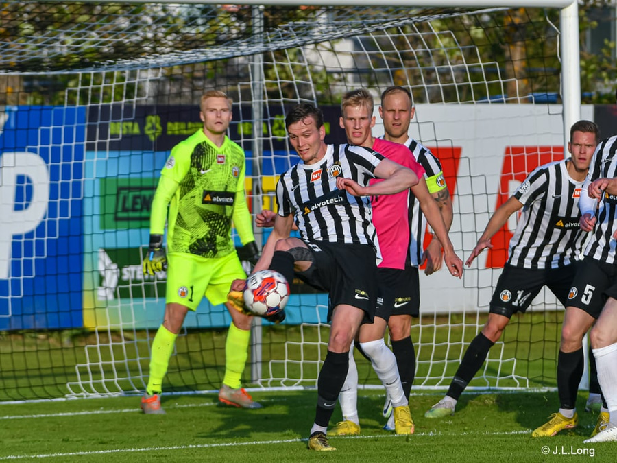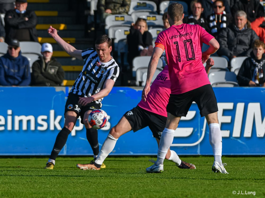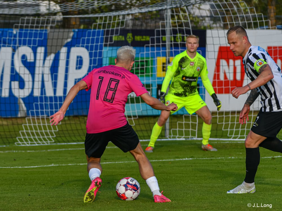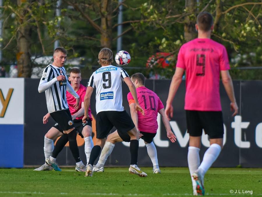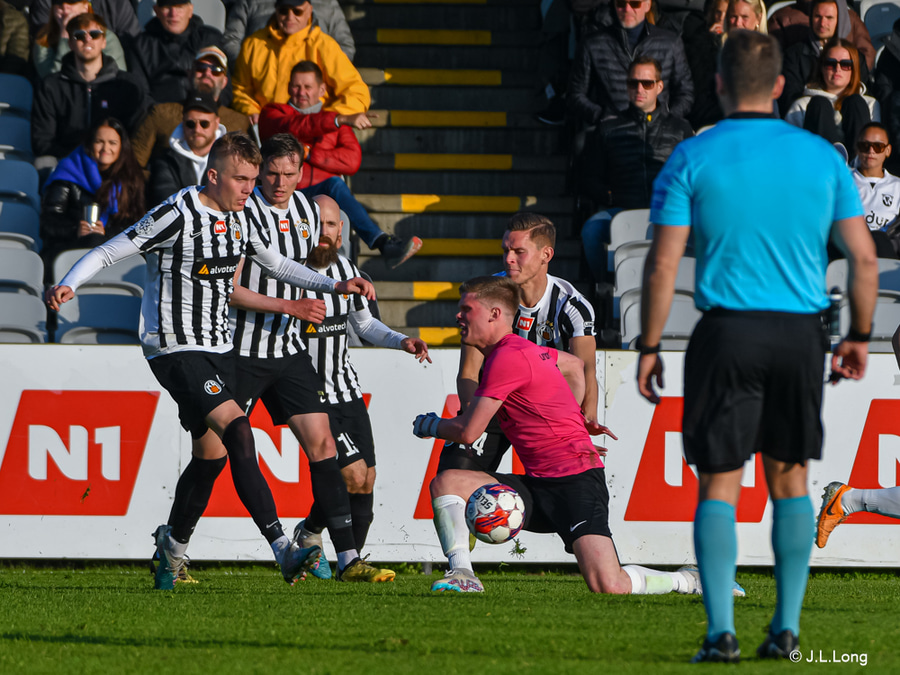 Þarna var Davíð Snær ansi nálægt því að koma gestunum yfir. Ástbjörn með fyrirgjöfina út í teiginn en skot Davíðs er naumlega framhjá
