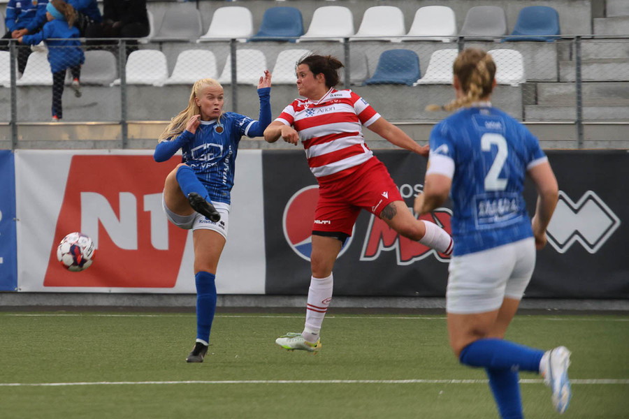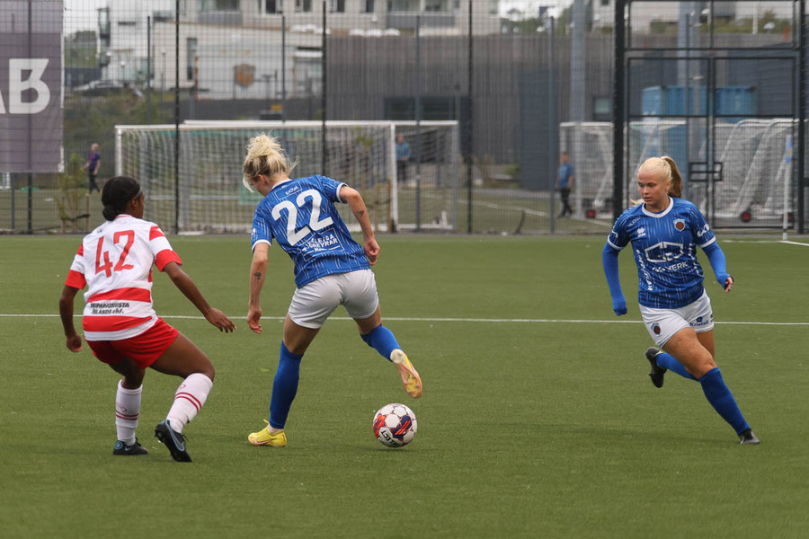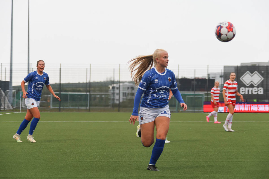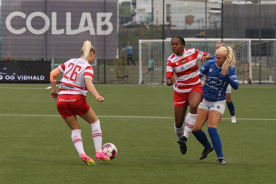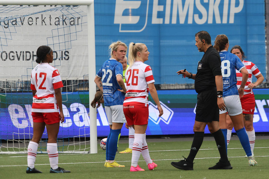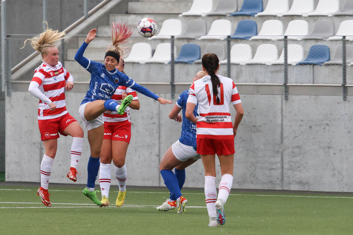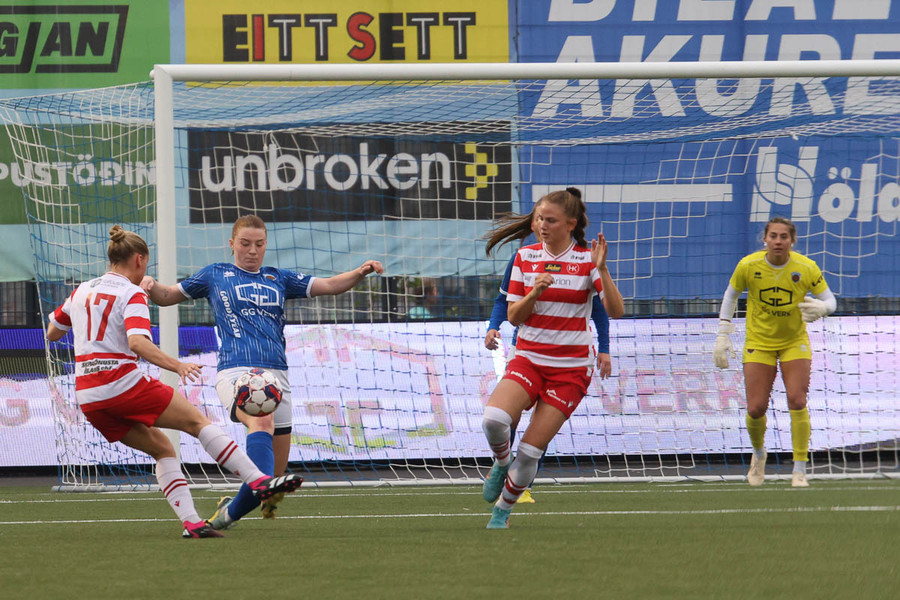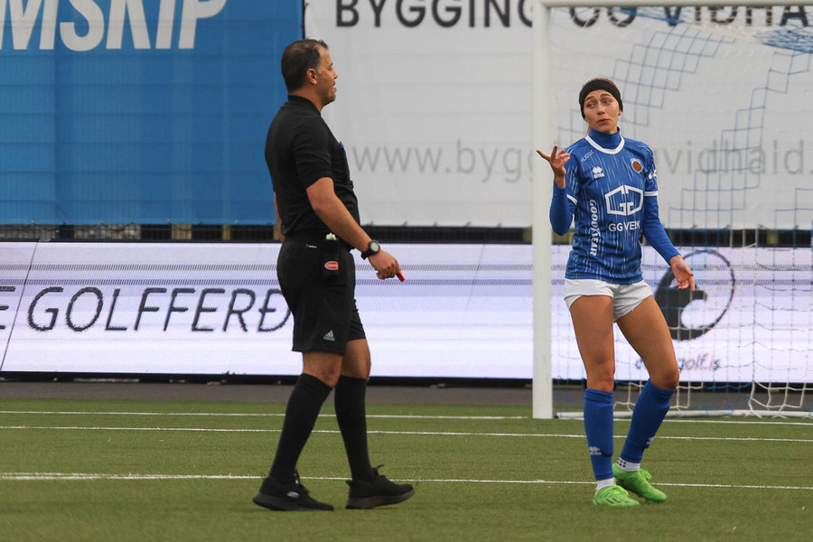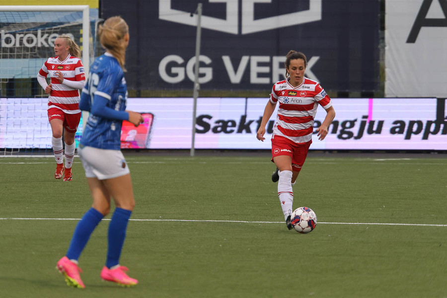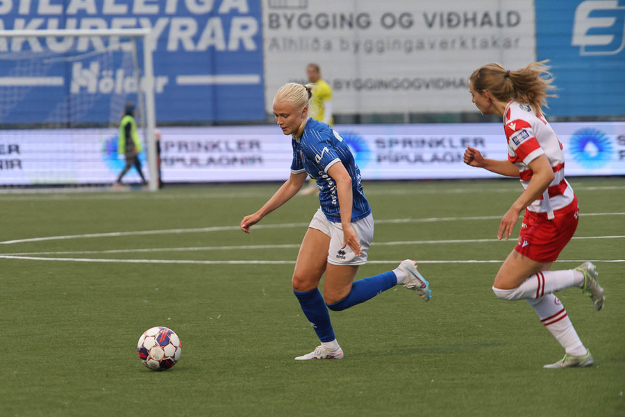Isabella nær boltanum af aftasta varnamanni og er kominn ein á móti markvörð. Hún skýtur en boltinn fer framhjá.