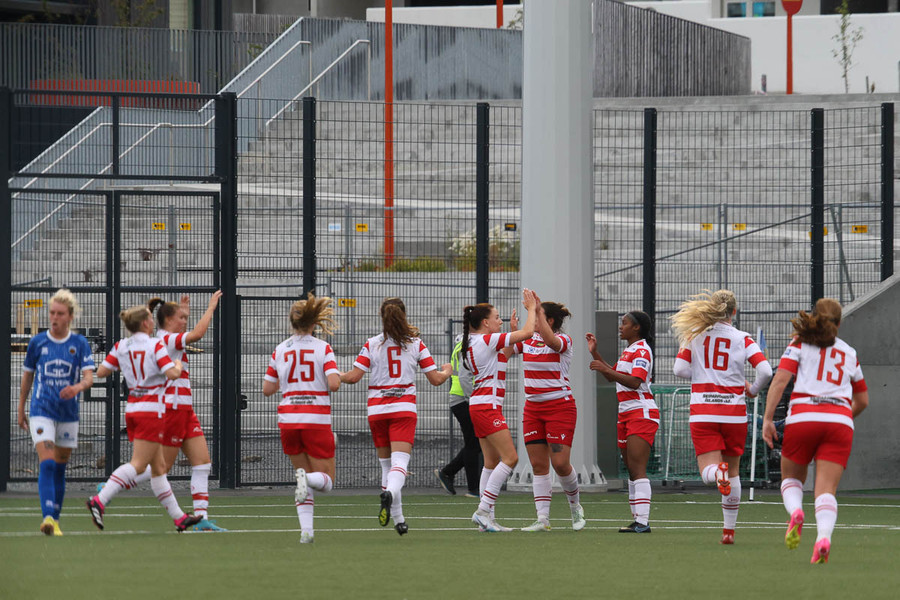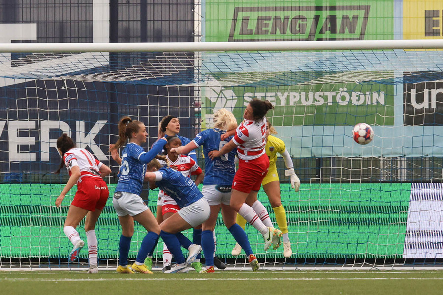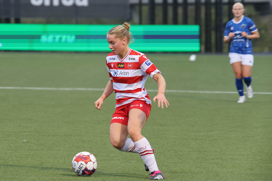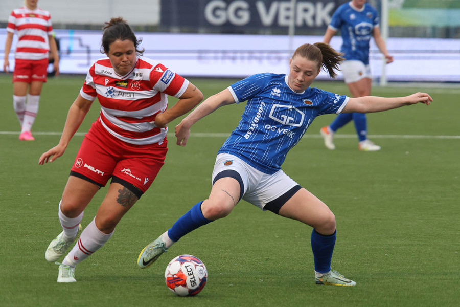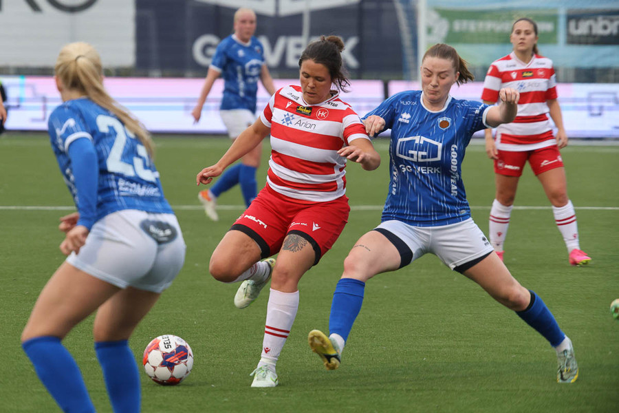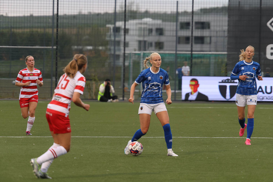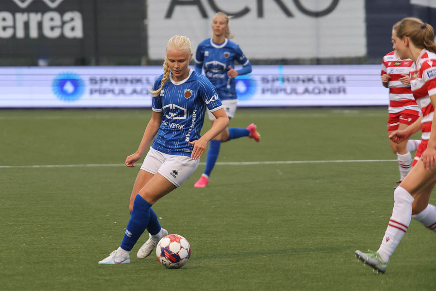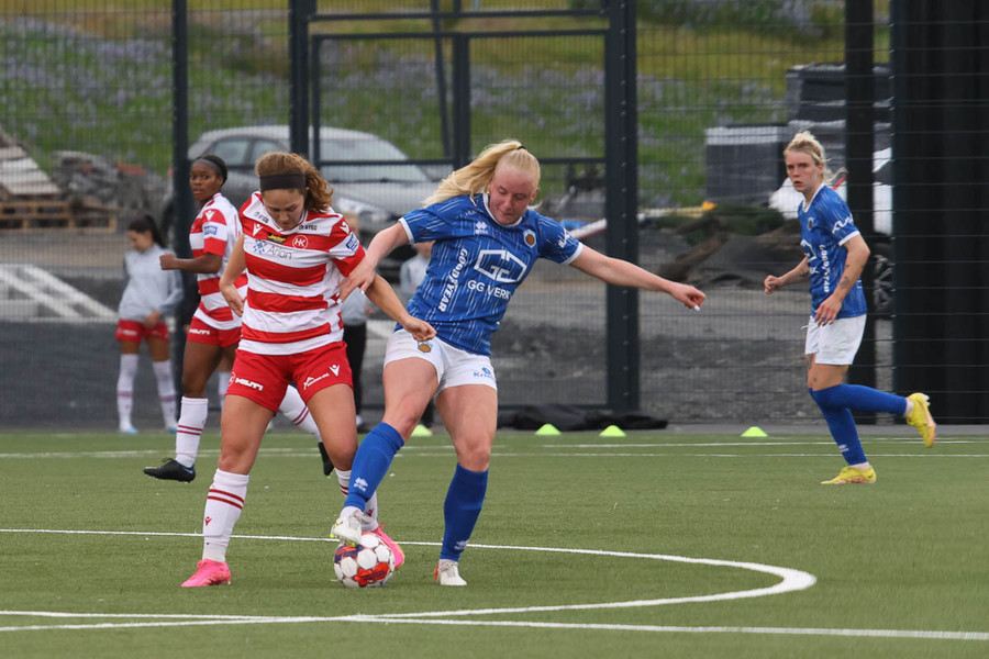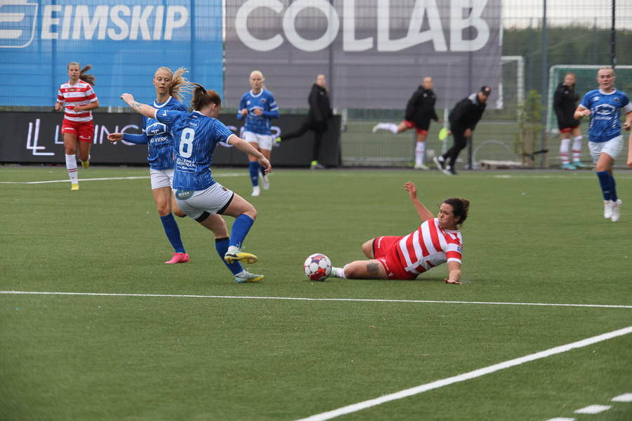 Isabella nær boltanum af aftasta varnamanni og er kominn ein á móti markvörð. Hún skýtur en boltinn fer framhjá.