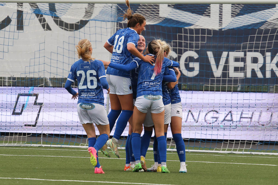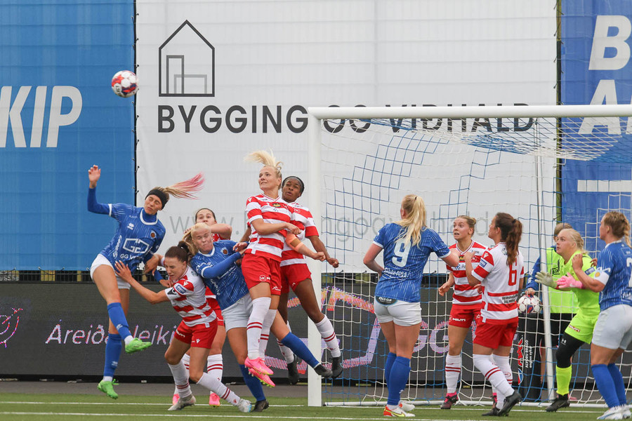 Eyrún með lága sendingu inn í teiginn. Boltinn fer í gegnum allann pakkan en á fjærstönginni lúrir Guðmunda og kemur boltanum í netið!